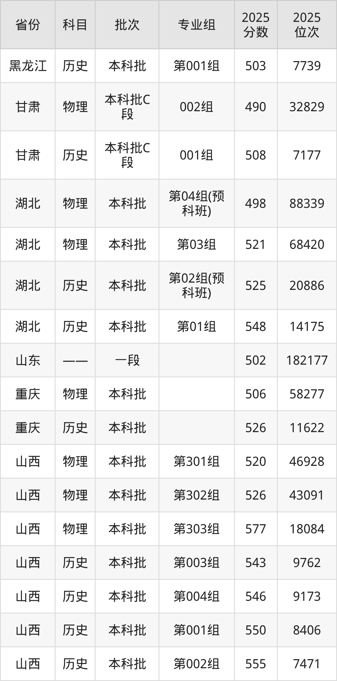 2025年投档录取最低分为506分,录取最低位次为58277名。