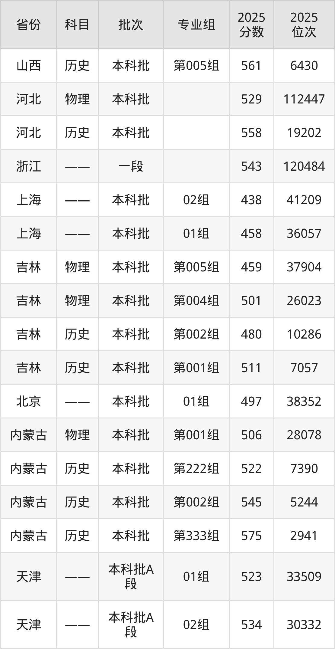 2025年投档录取最低分为529分,录取最低位次为112447名。