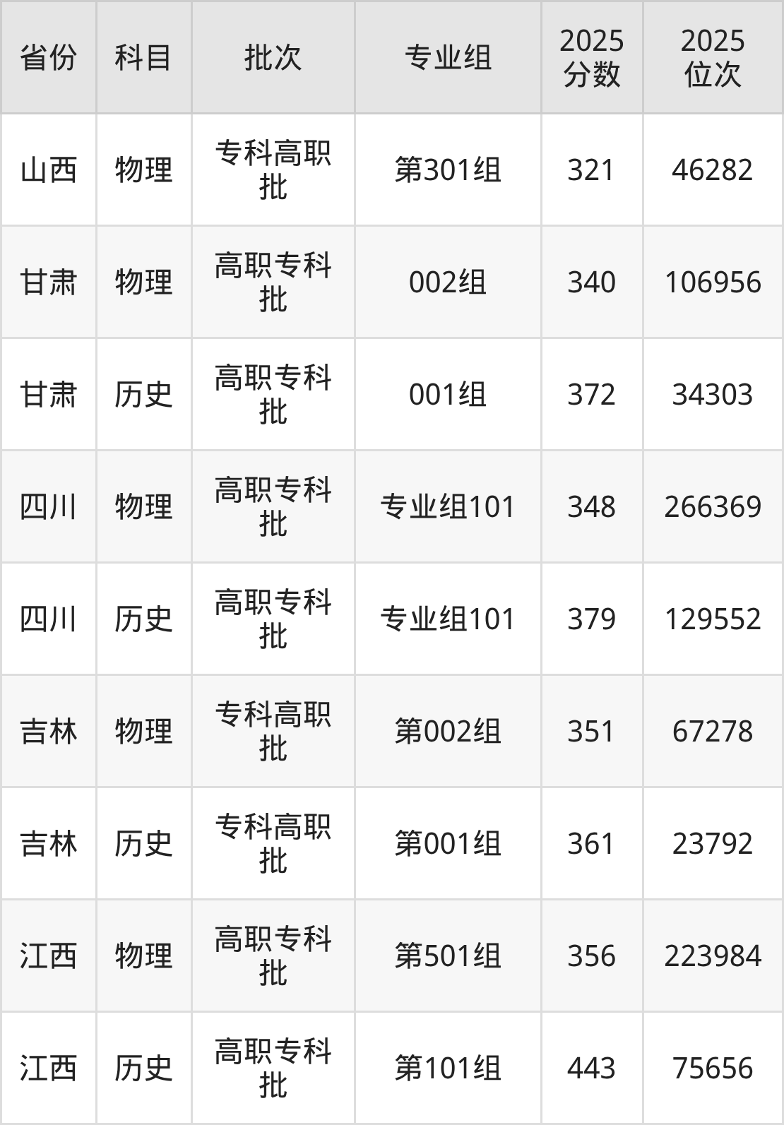 2025年在专科文科进行招生,各专业组分数线详情如下: