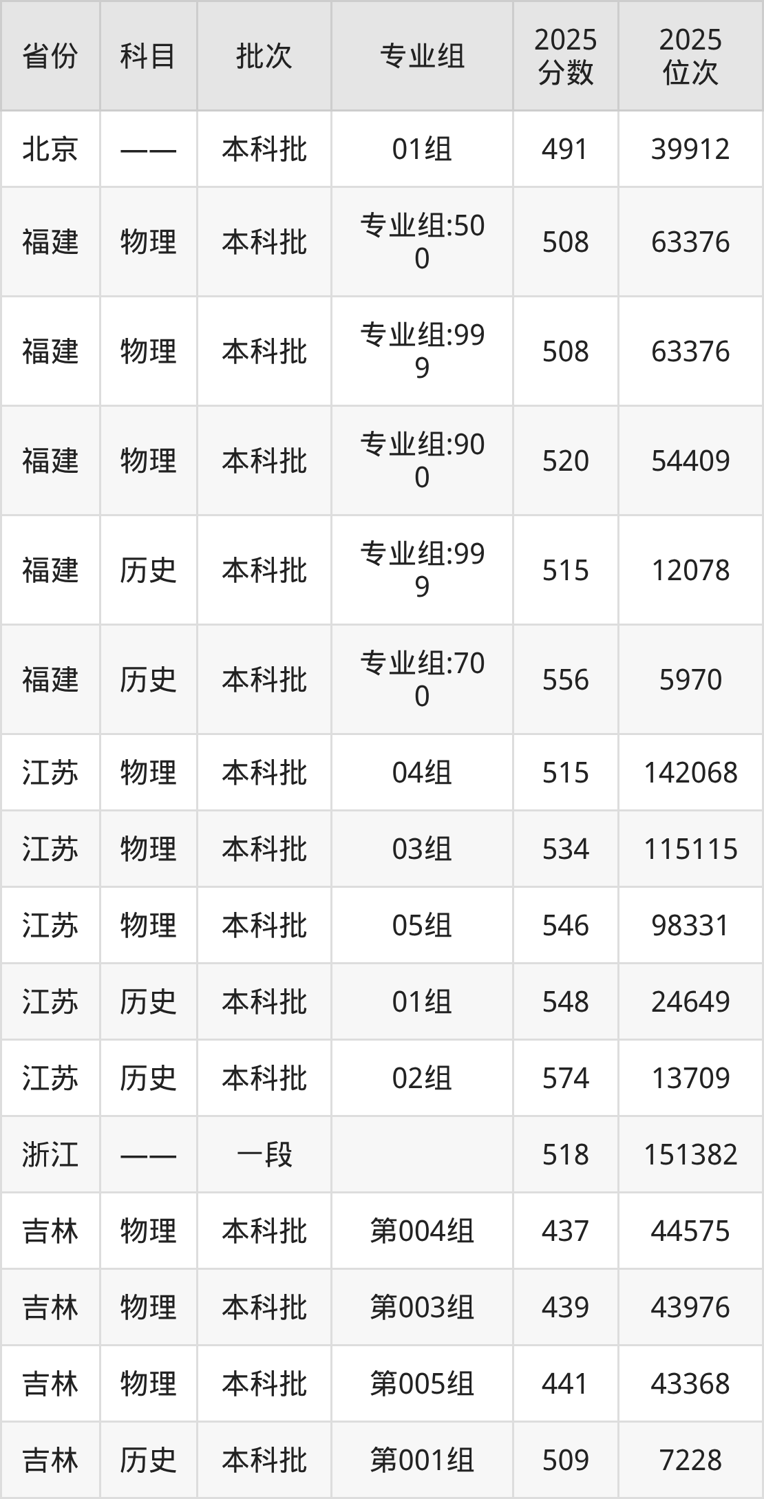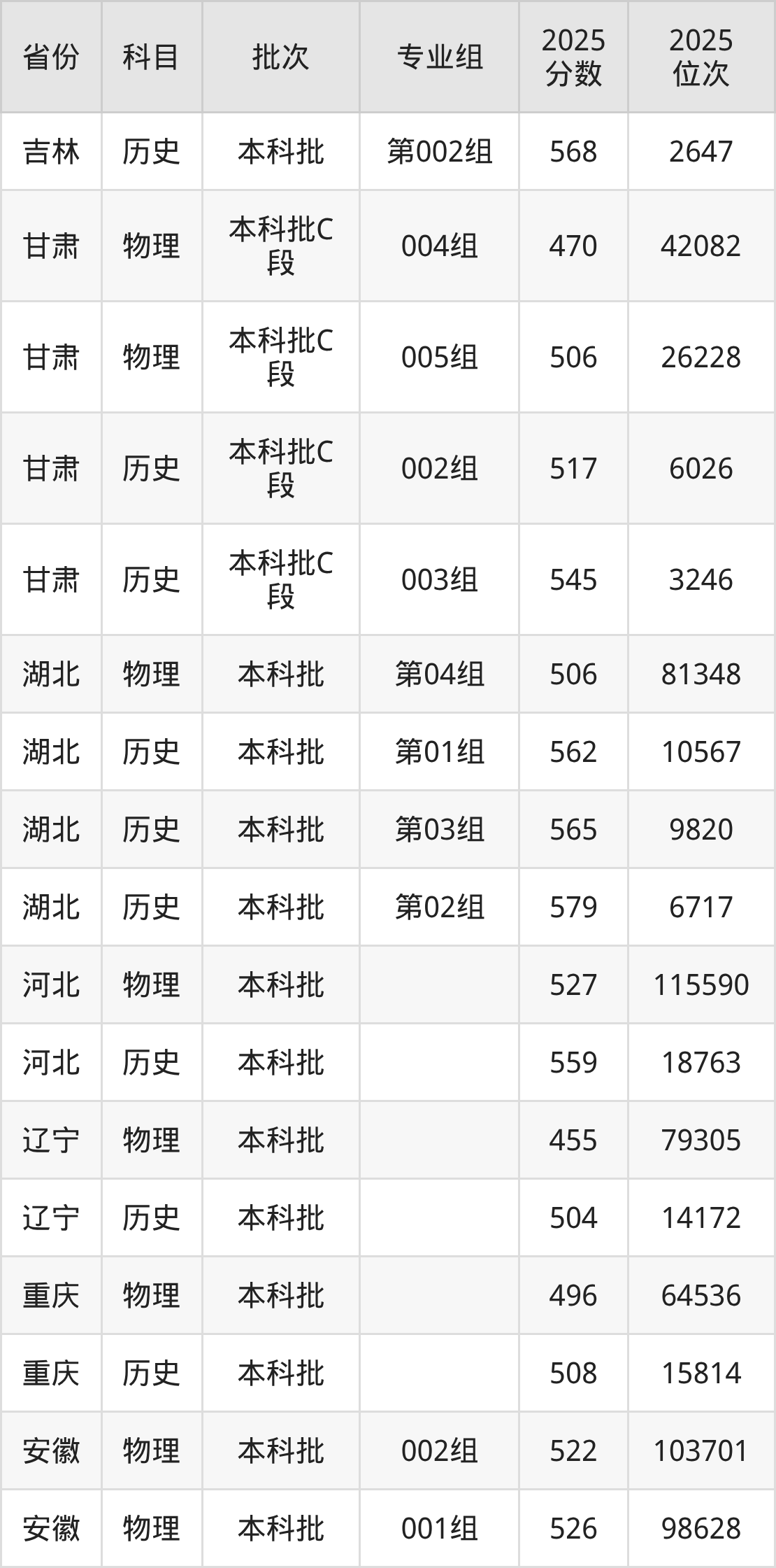 普通类本科物理类最低506分,本科历史类最低541分
