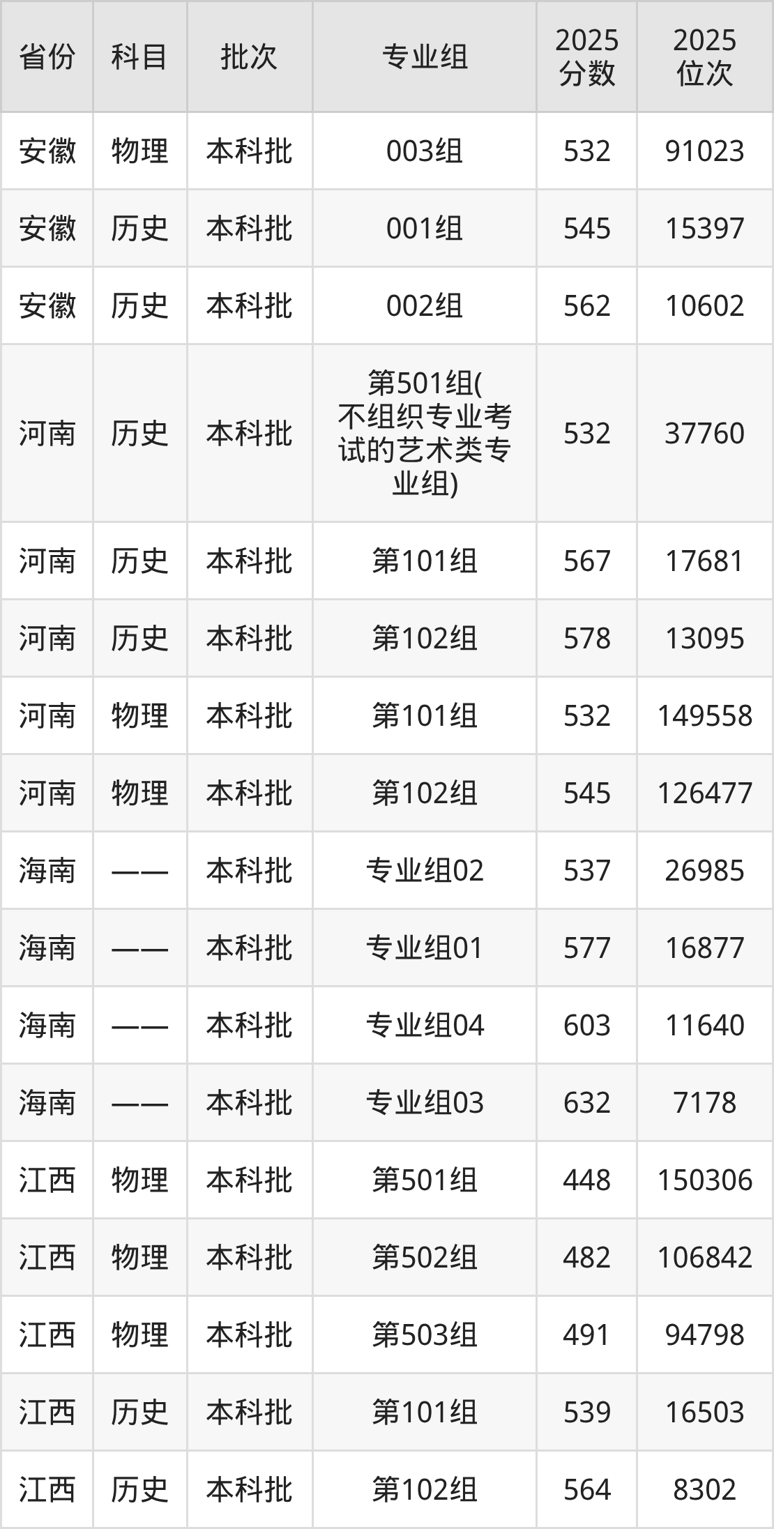 2025年山西师范大学全国录取分数线是418分到632分,录取最低在广西物理类(102组)、录取最高在海南(专业组03)。各省各专业组最低分具有差异,详情如下: