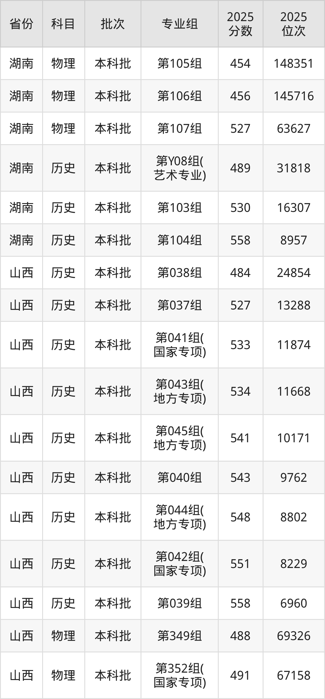 山西师范大学第041组(国家专项计划):2025年投档录取最低分为533分,录取最低位次为11874名。