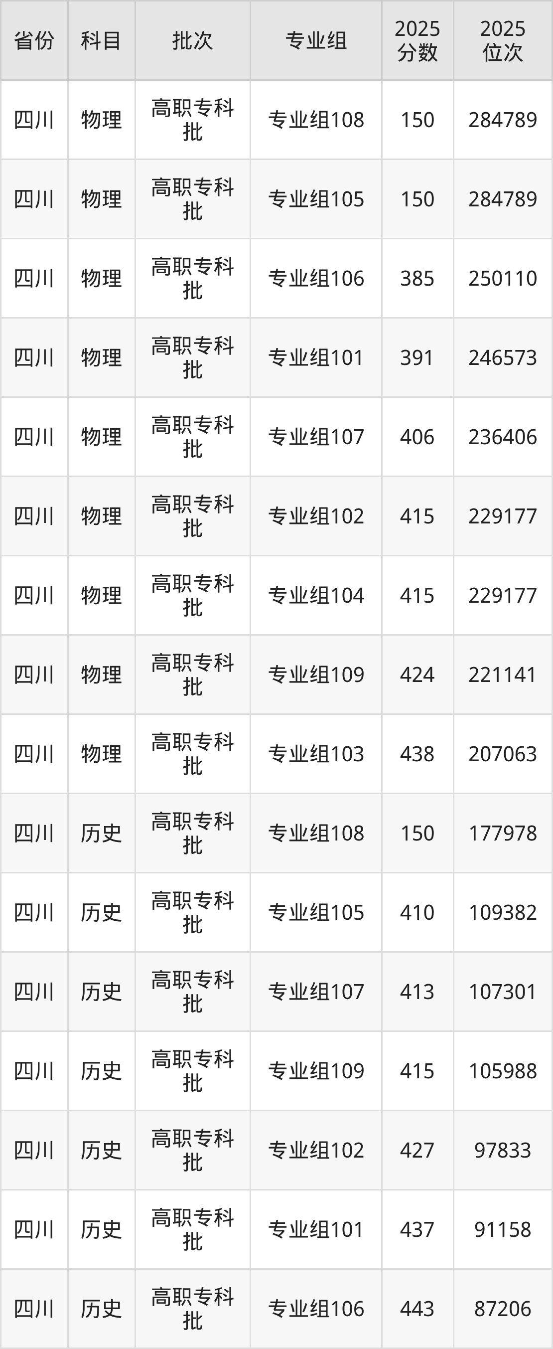 岳阳职业技术学院专业组108:2025年投档录取最低分为150分,录取最低位次为284789名。