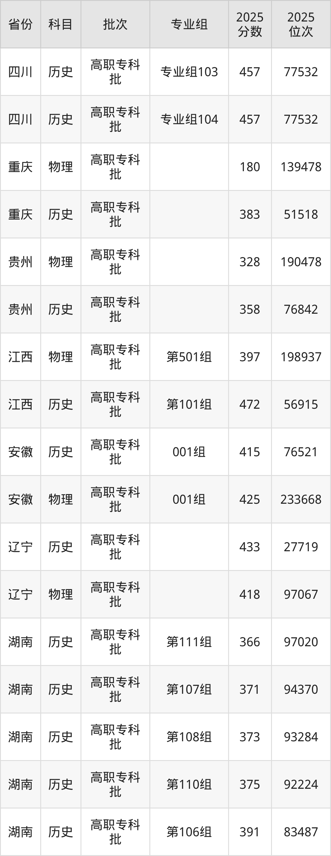 岳阳职业技术学院专业组104:2025年投档录取最低分为457分,录取最低位次为77532名。