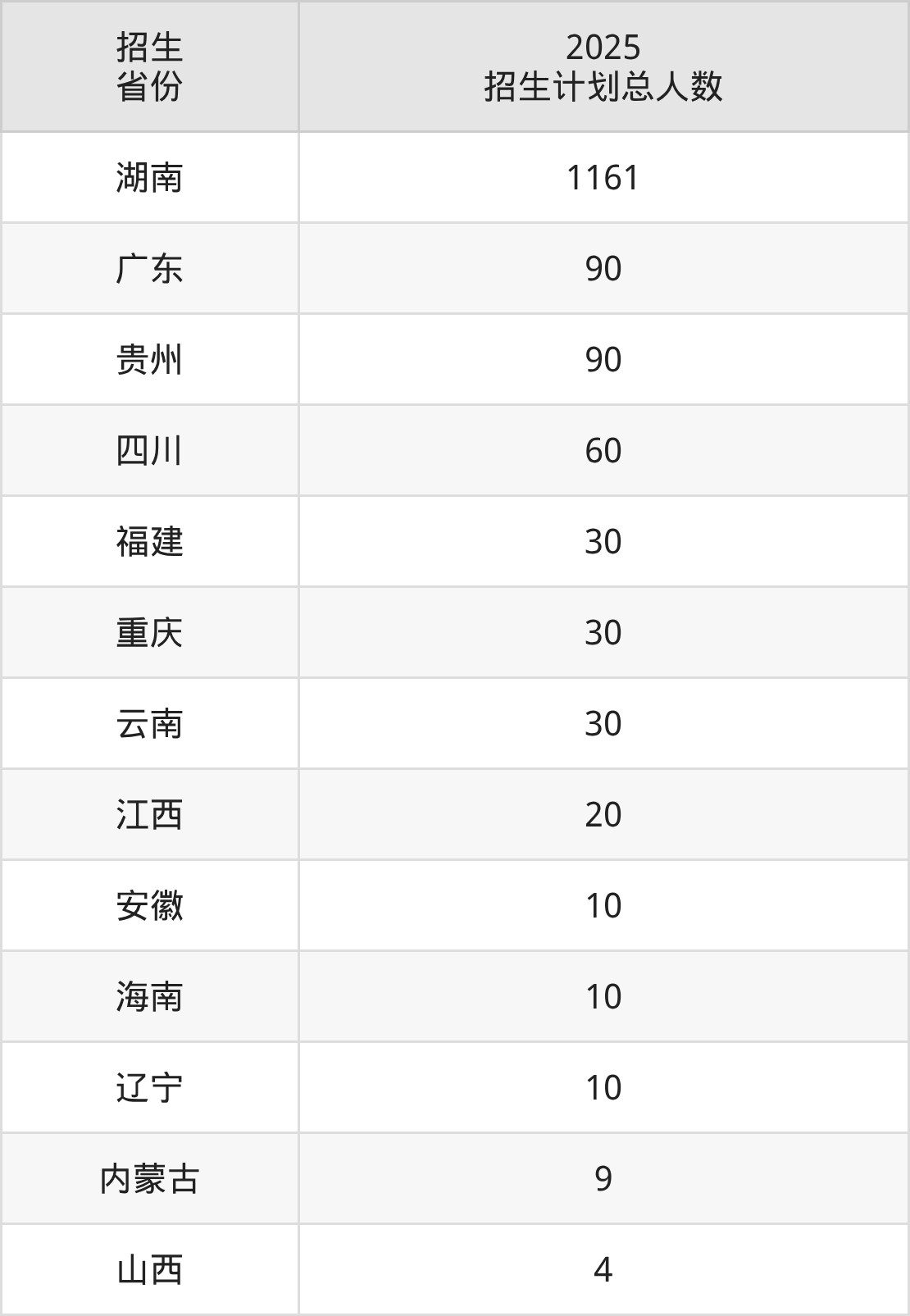 2025年岳阳职业技术学院面向全国13个省市开展专科招生;招生专业共32个,招生人数共1554人。2025年在湖南省招生计划总人数是1161人,其中,岳阳职业技术学院在湖南省招生人数最多的是机电一体化技术。岳阳职业技术学院在各省具体招生人数情况如下表。