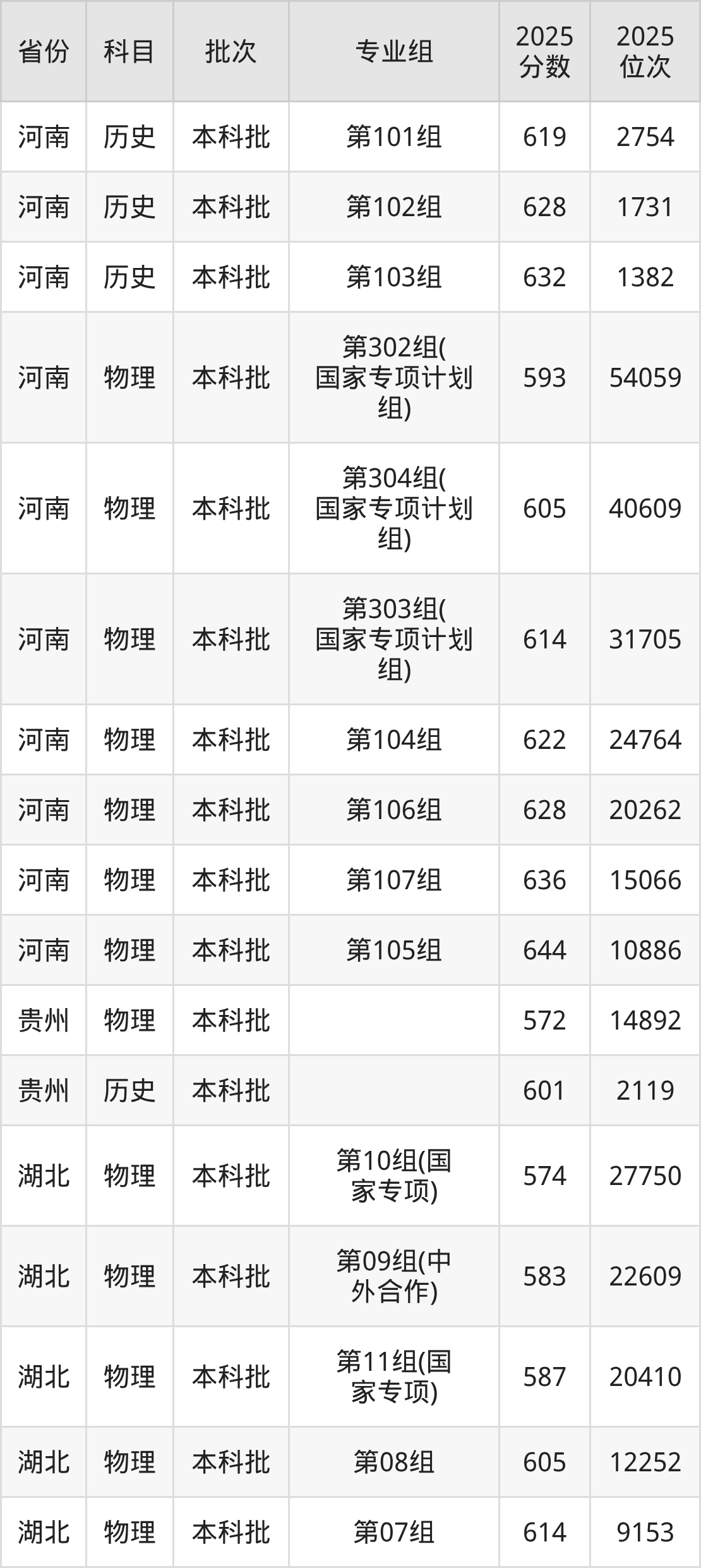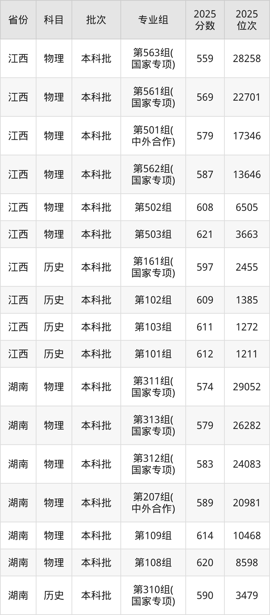 苏州大学第303组(国家专项计划组):2025年投档录取最低分为614分,录取最低位次为31705名。