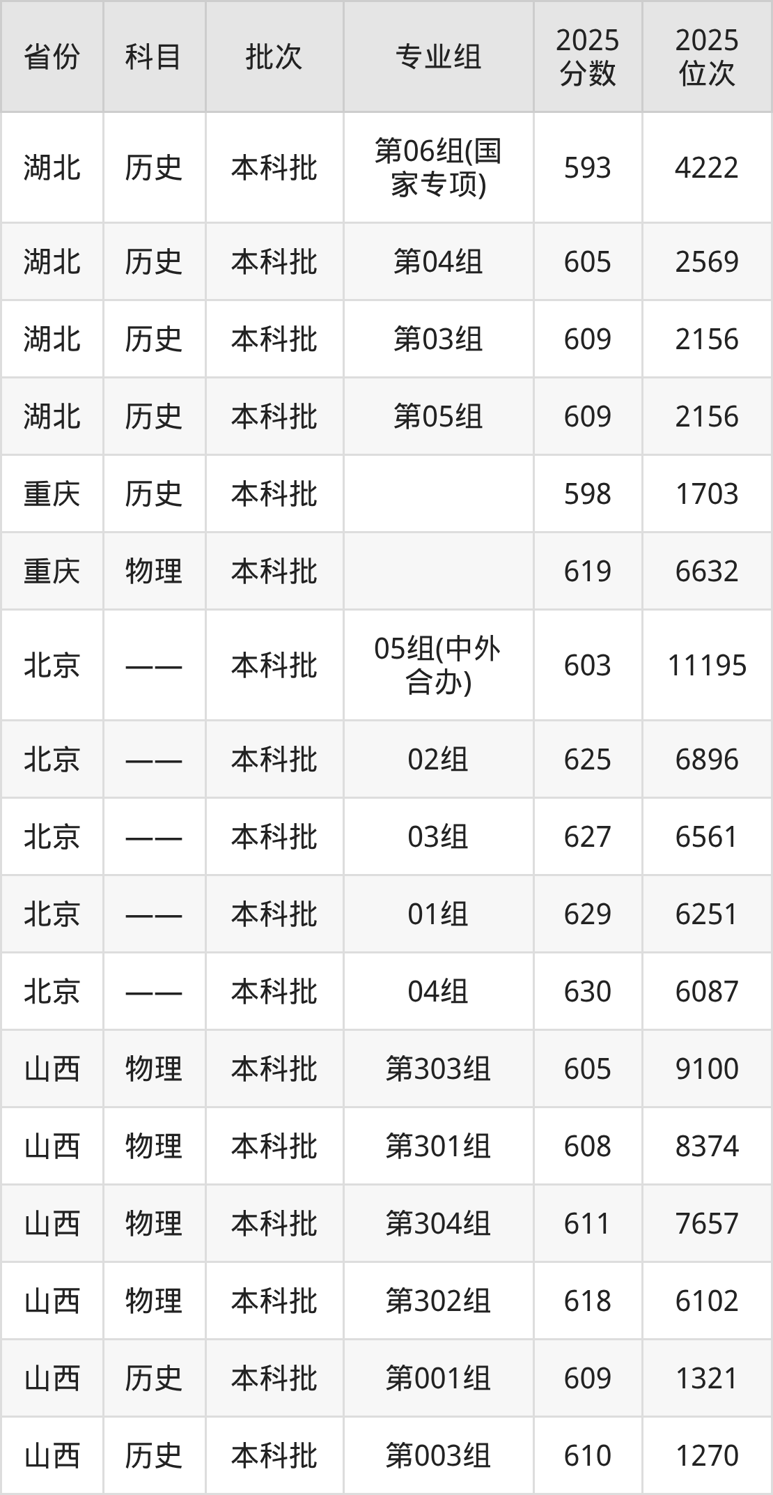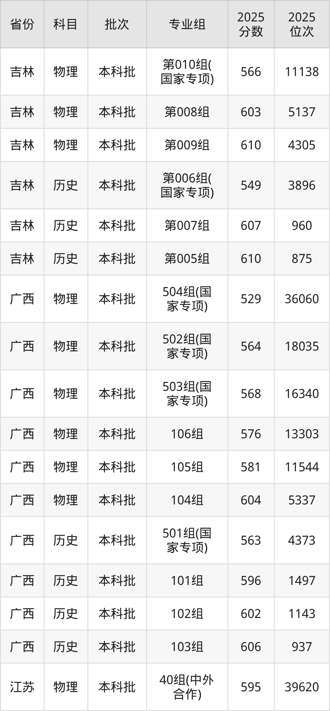 苏州大学第304组(国家专项计划组):2025年投档录取最低分为605分,录取最低位次为40609名。