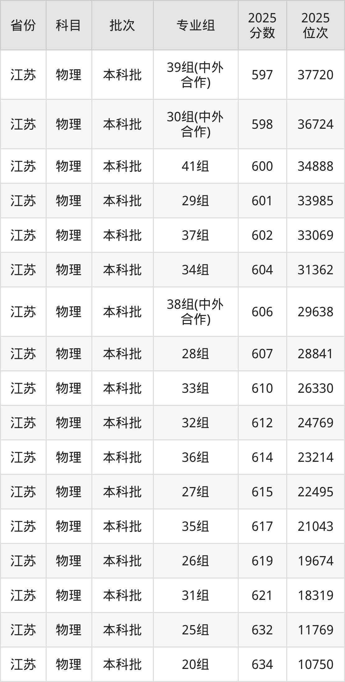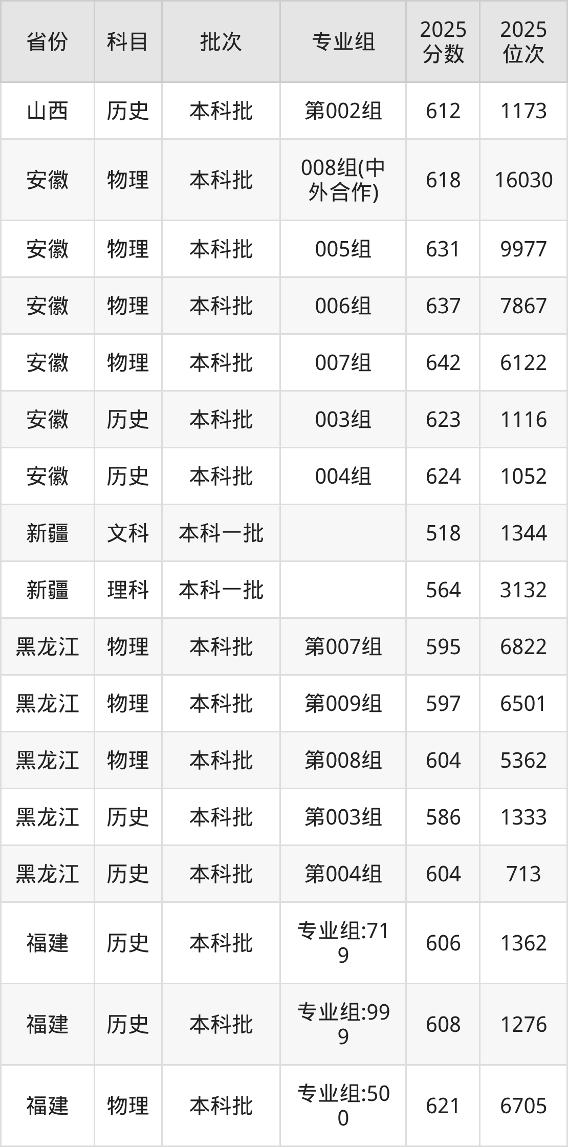 苏州大学008组(中外合作办学):2025年投档录取最低分为618分,录取最低位次为16030名。