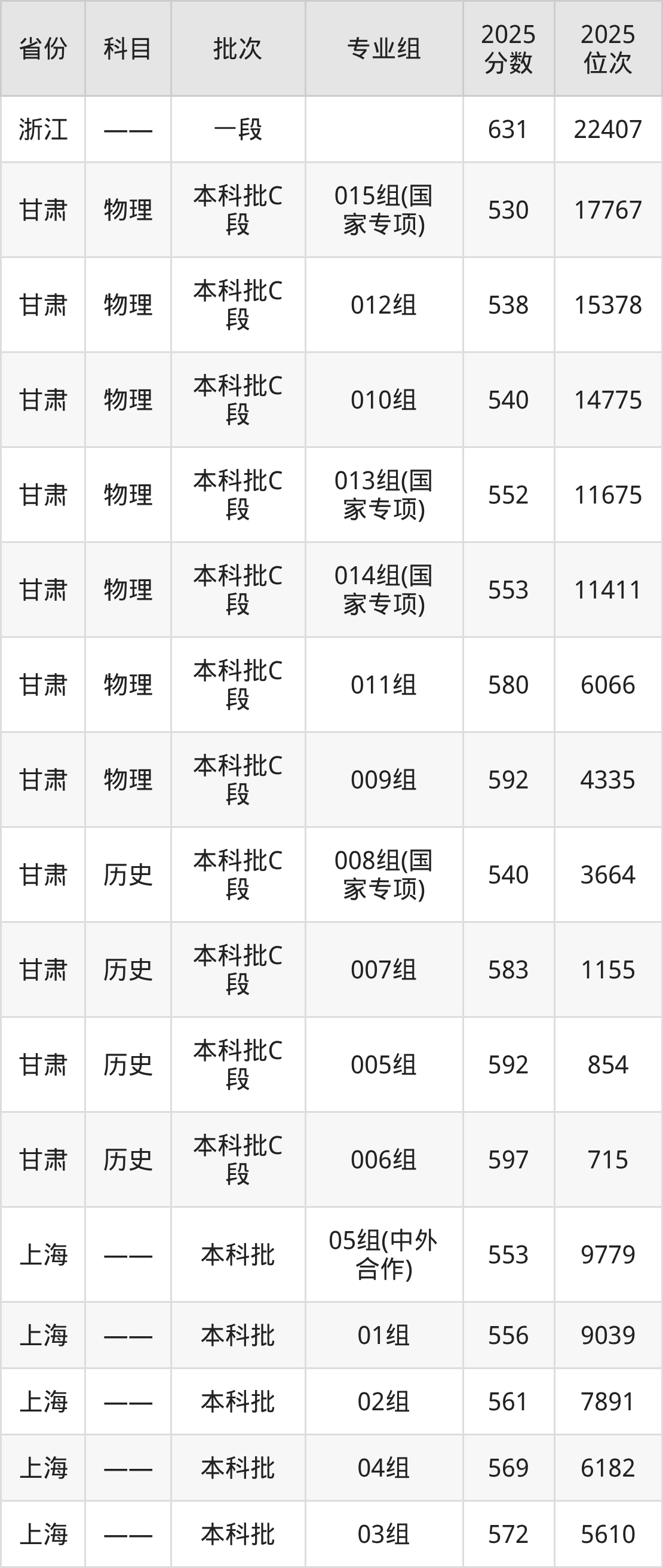 苏州大学第11组(国家专项计划):2025年投档录取最低分为587分,录取最低位次为20410名。