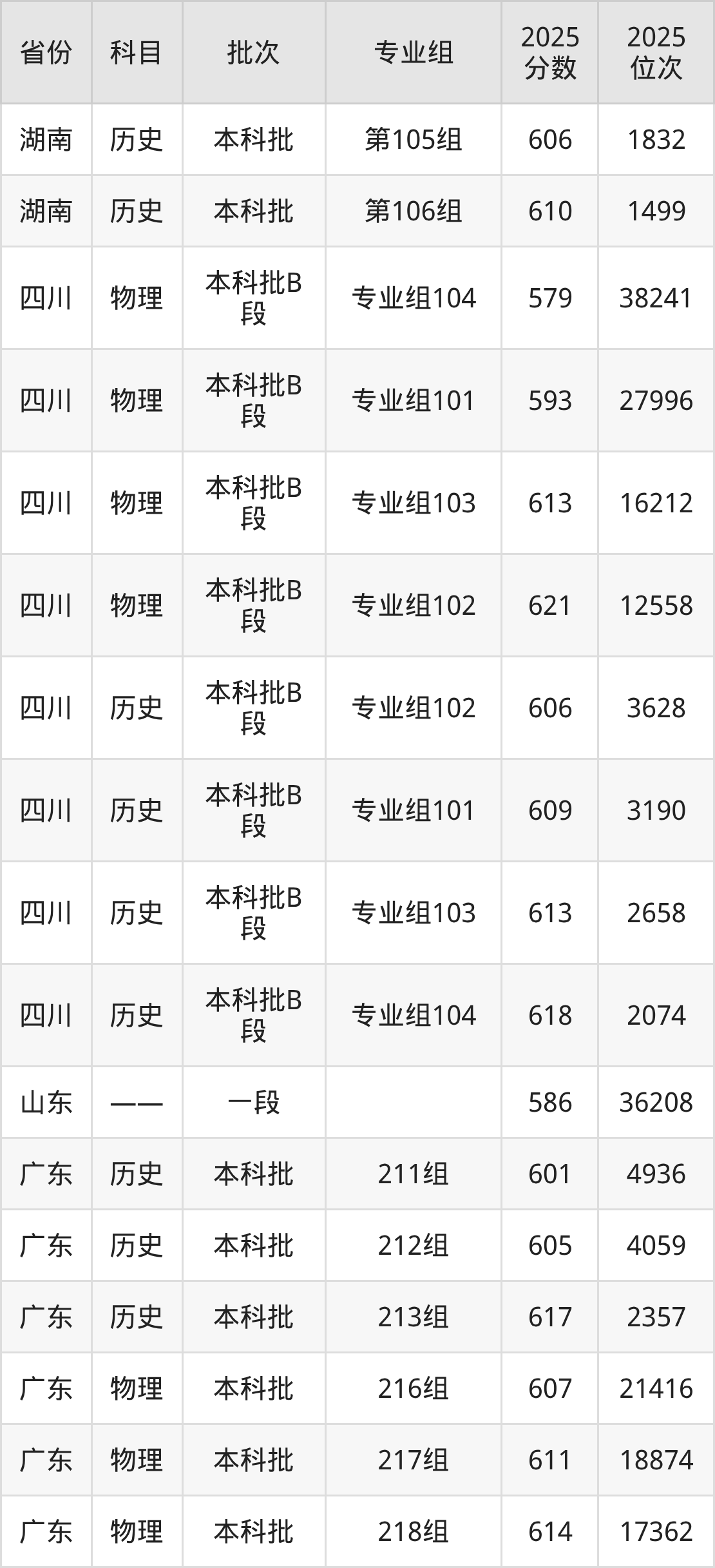 2025年投档录取最低分为619分,录取最低位次为6632名。