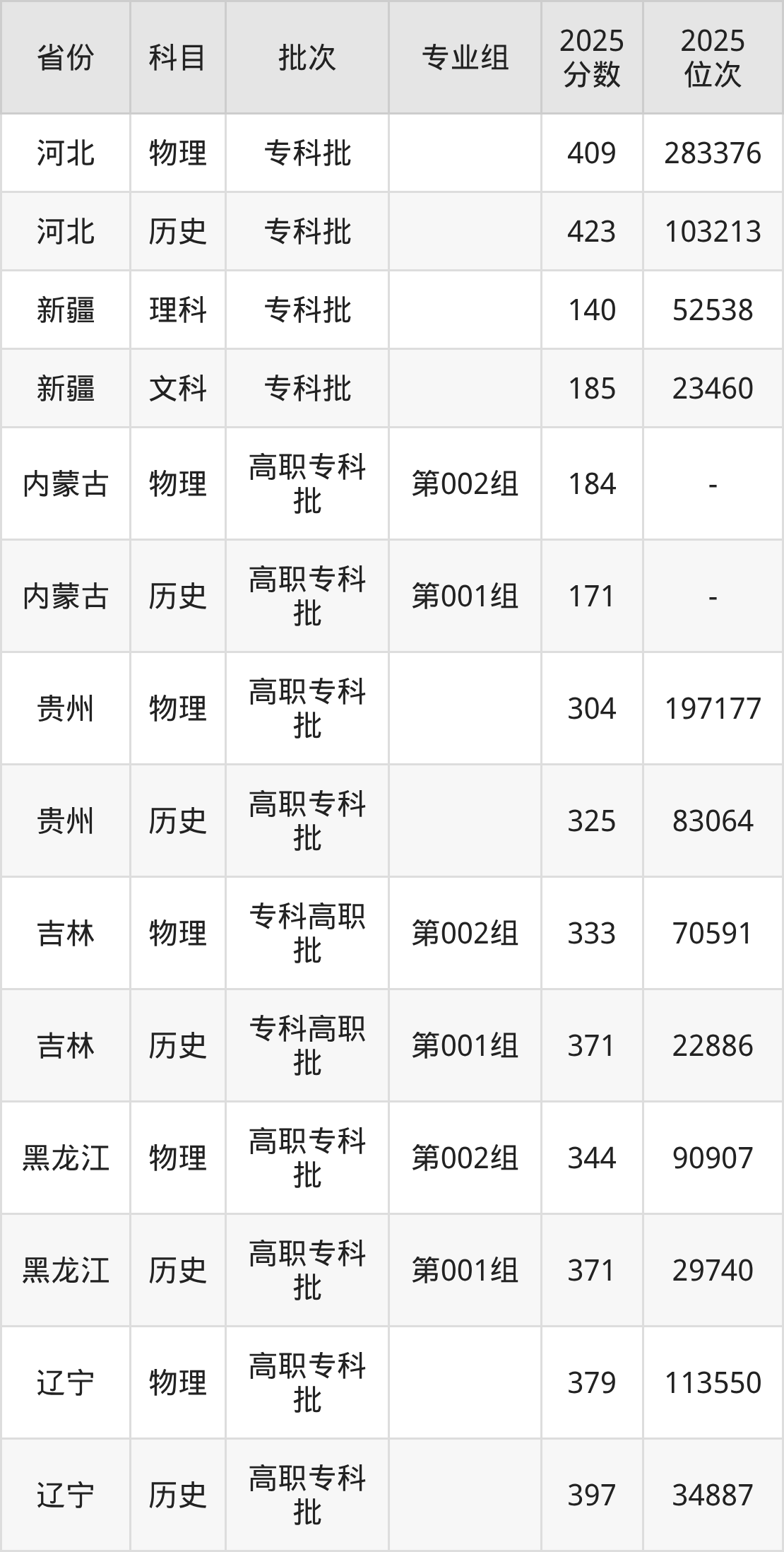 2025年通辽职业学院全国录取分数线是140分到423分,录取最低在新疆理科、录取最高在河北历史类。各省各专业组最低分具有差异,详情如下:
