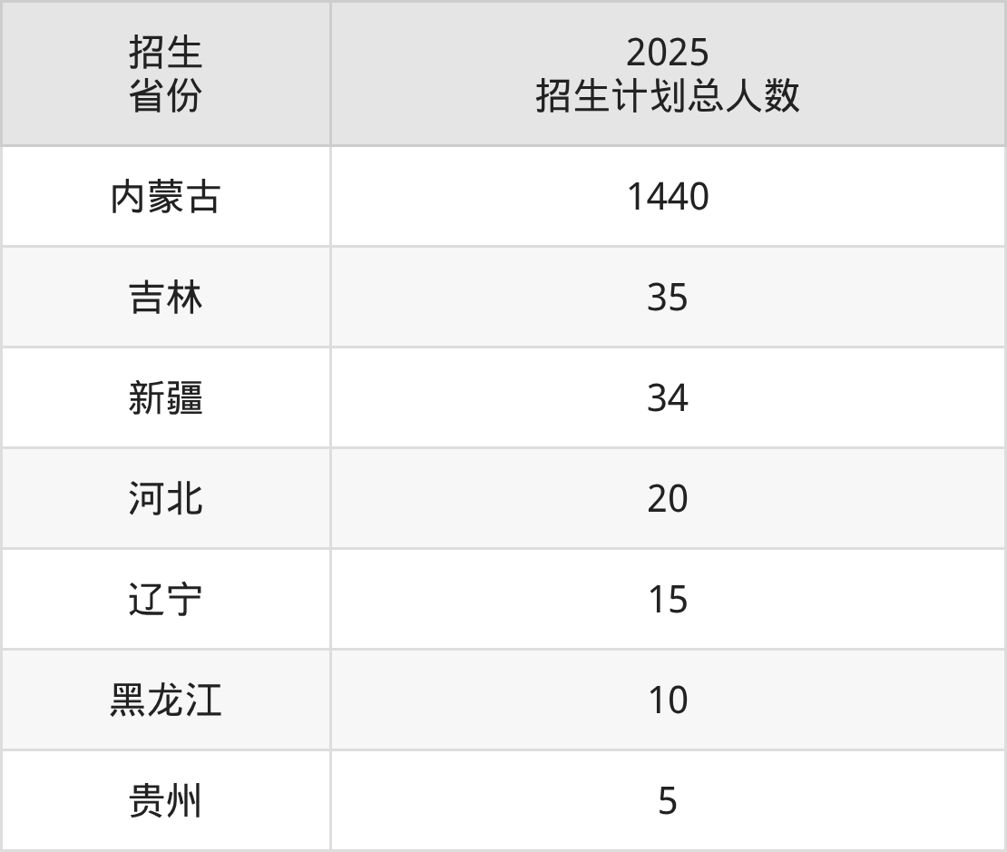 2025年通辽职业学院面向全国7个省市开展专科招生;招生专业共35个,招生人数共1559人。