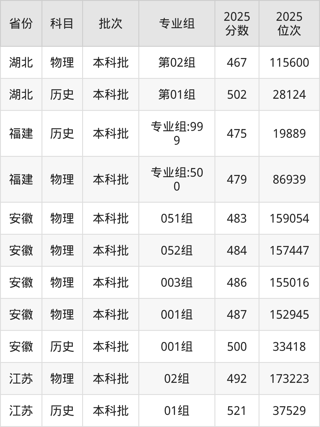 普通类本科物理类最低467分,本科历史类最低502分