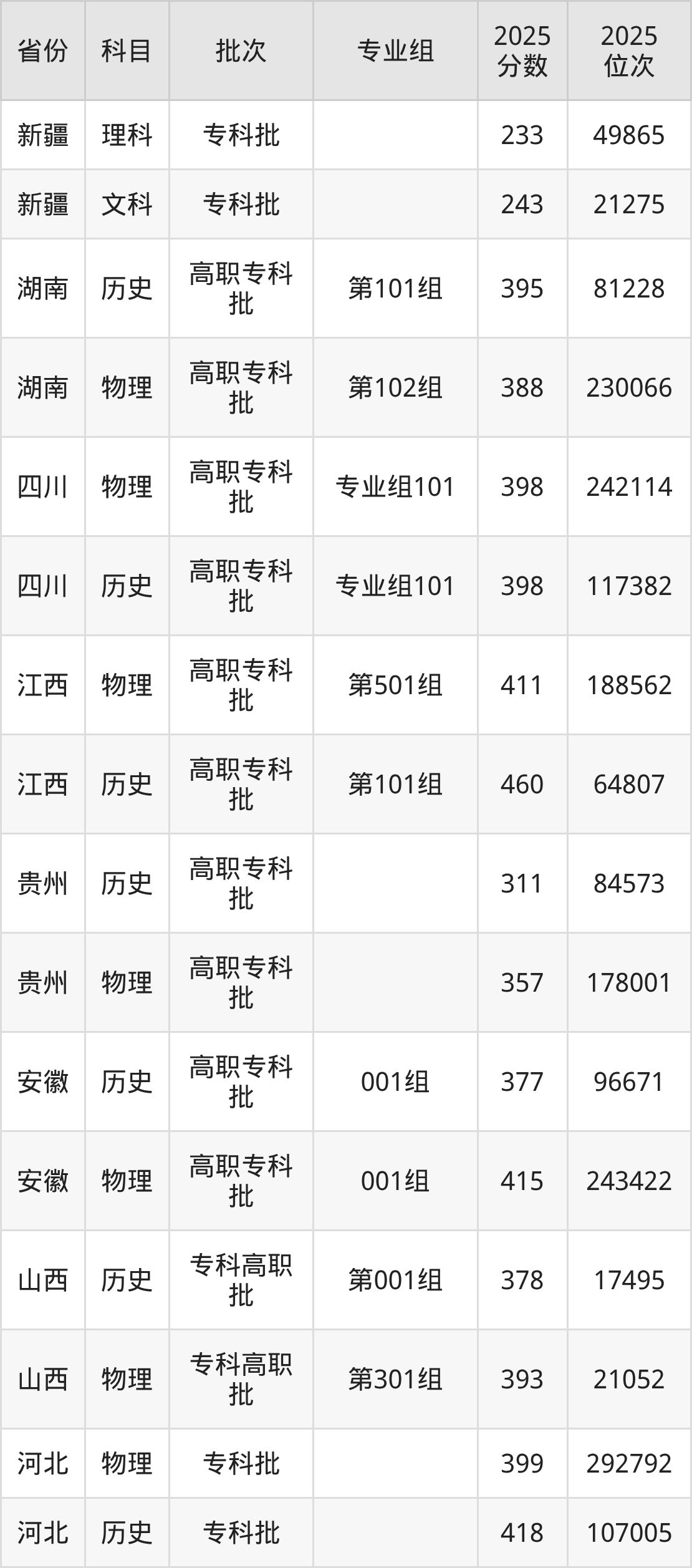 下面是2025年湖北科技职业学院全国录取分数线一览表,请查阅。