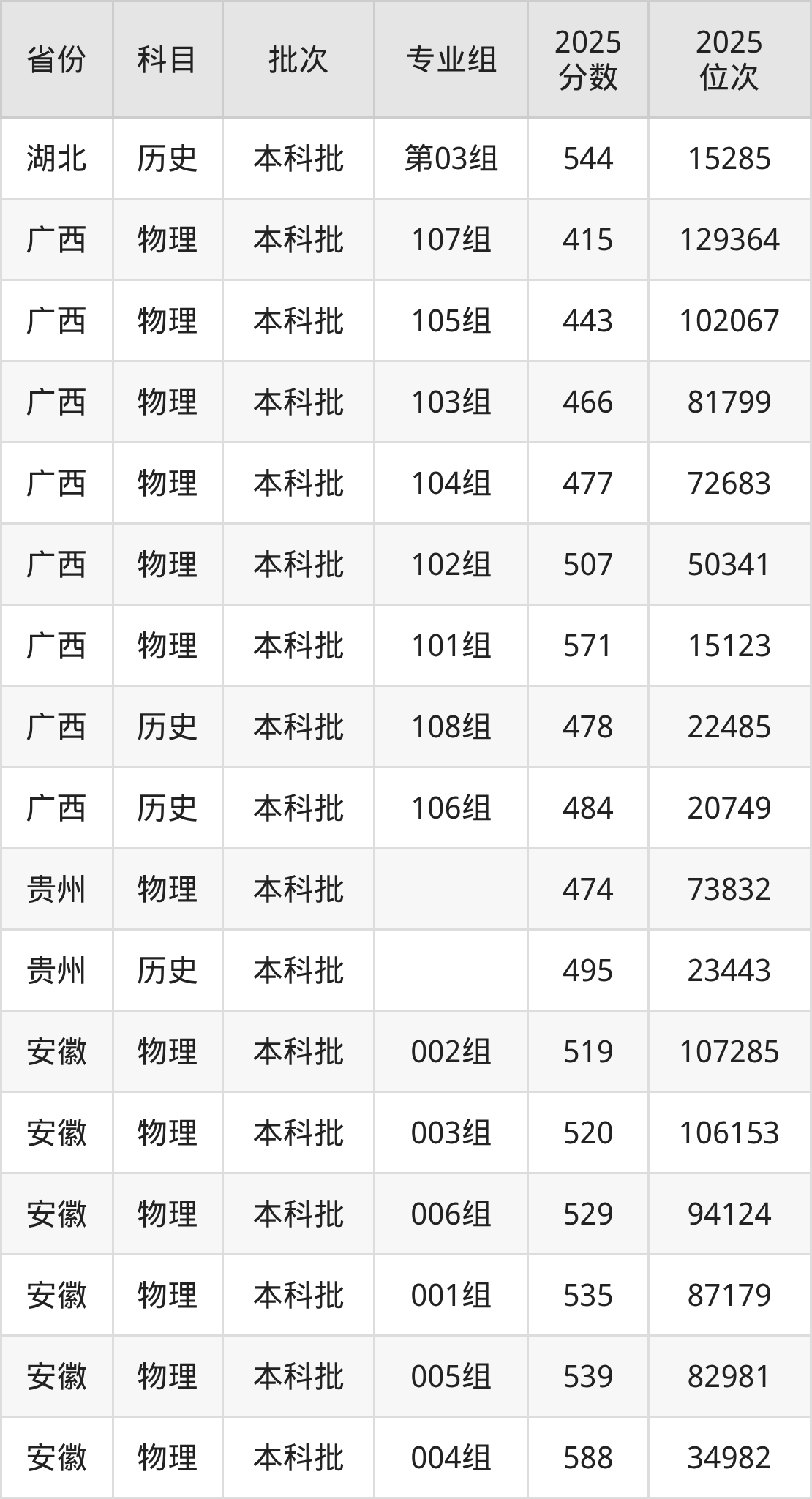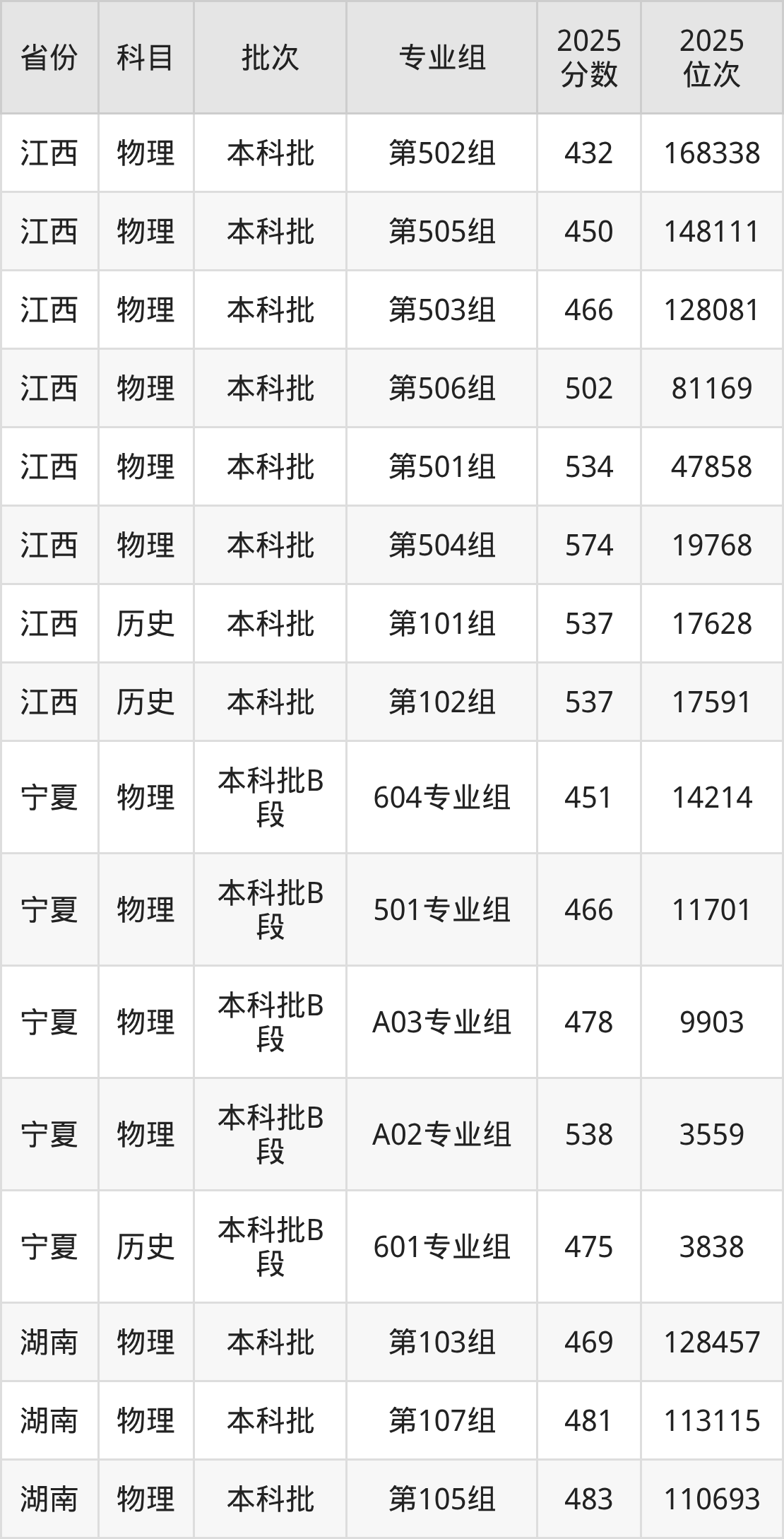 普通类本科历史类最低537分,本科物理类最低432分