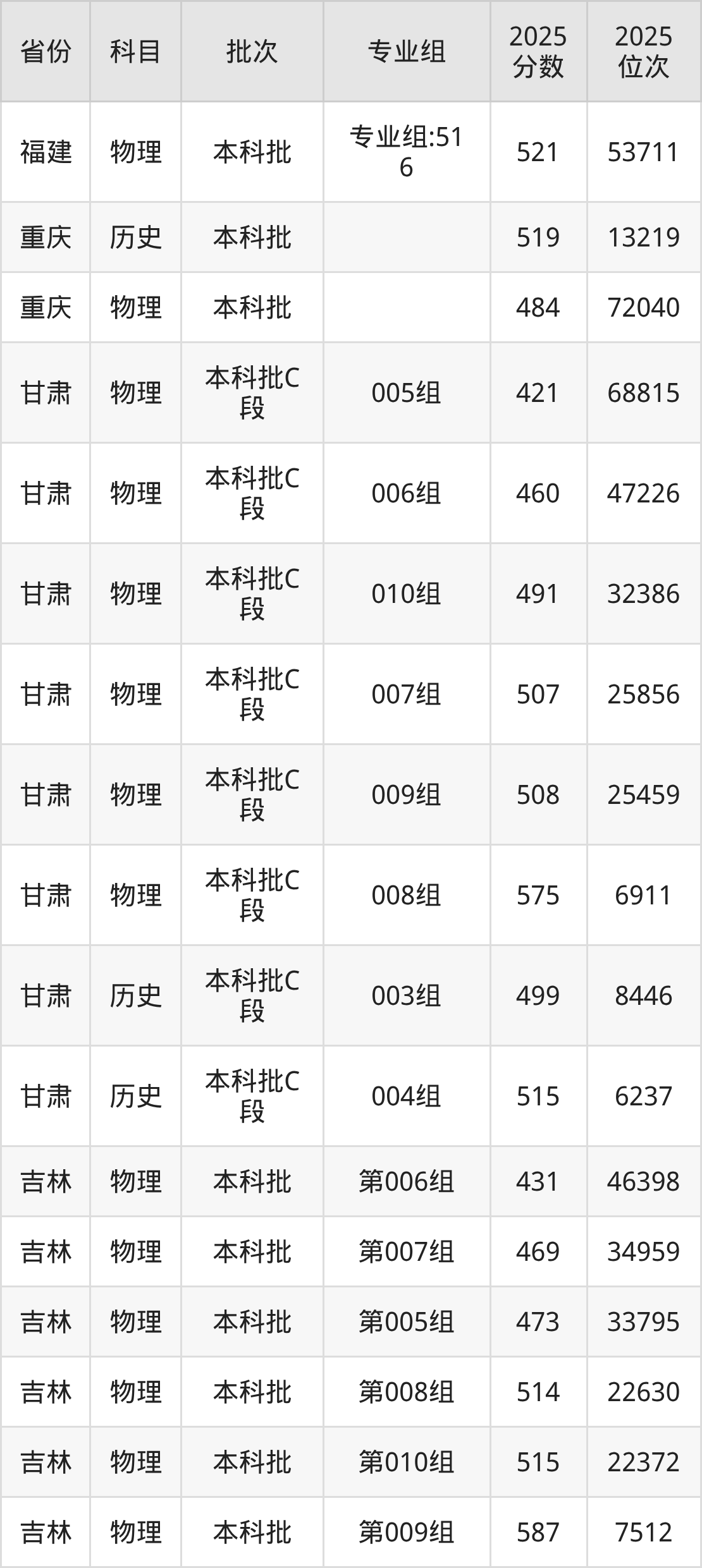 山西医科大学第007组:2025年投档录取最低分为450分,录取最低位次为50020名。