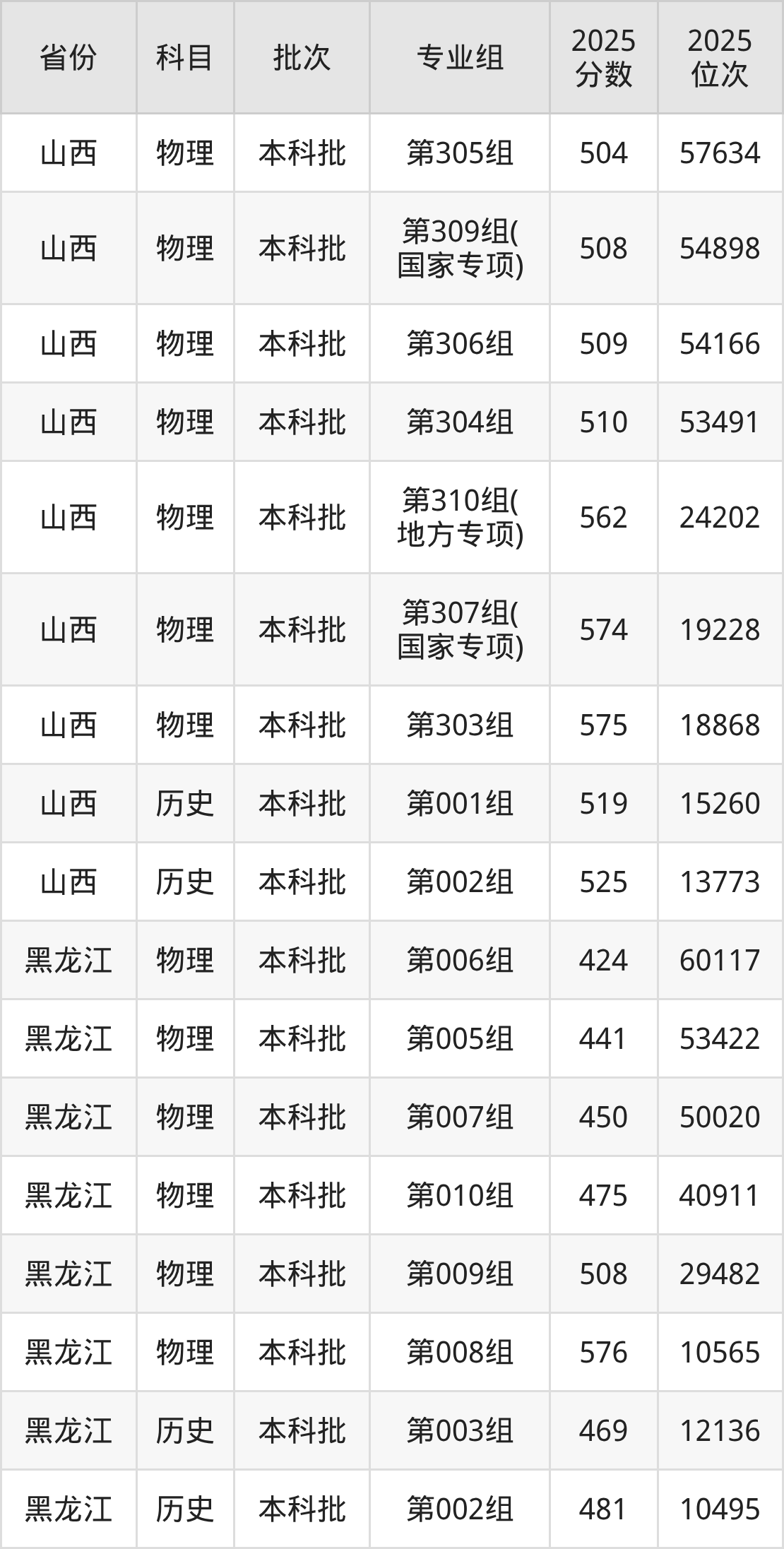 山西医科大学第308组(国家专项计划):2025年投档录取最低分为503分,录取最低位次为58353名。