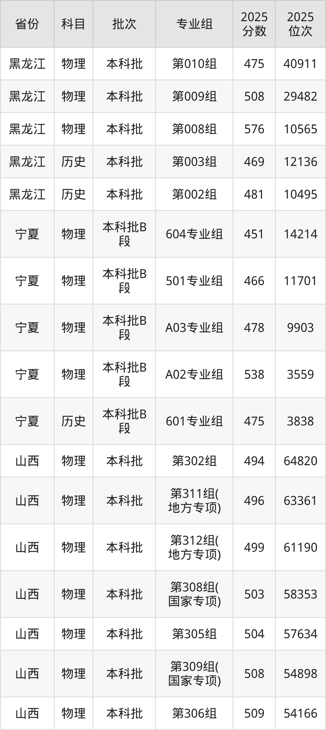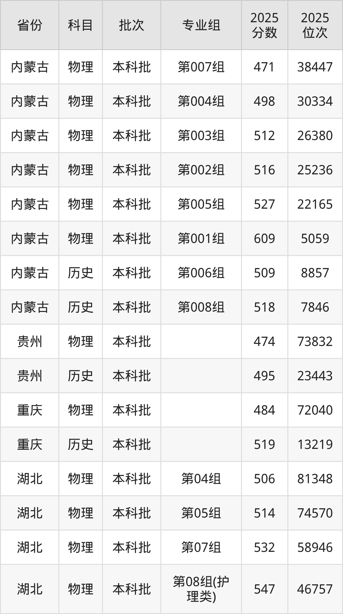 山西医科大学第005组:2025年投档录取最低分为473分,录取最低位次为33795名。