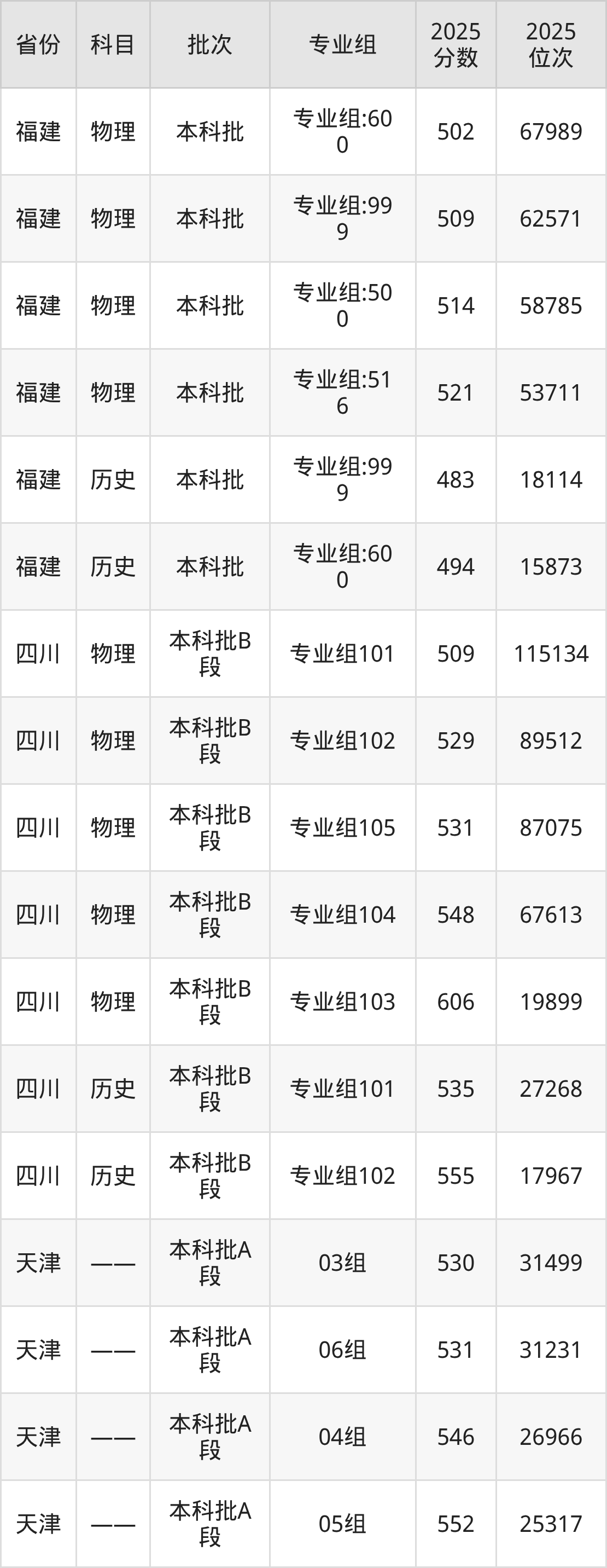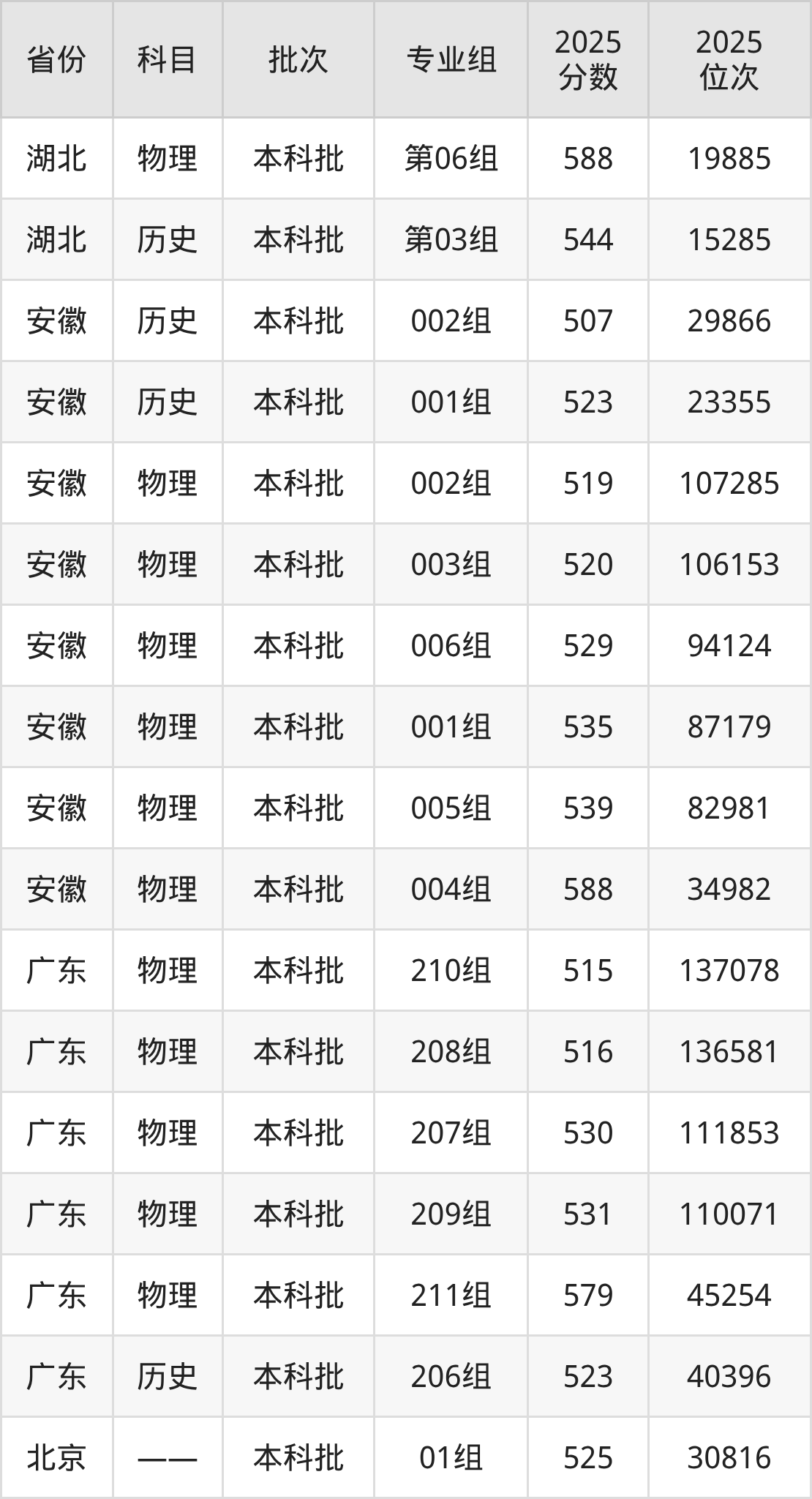 2025年投档录取最低分为519分,录取最低位次为13219名。