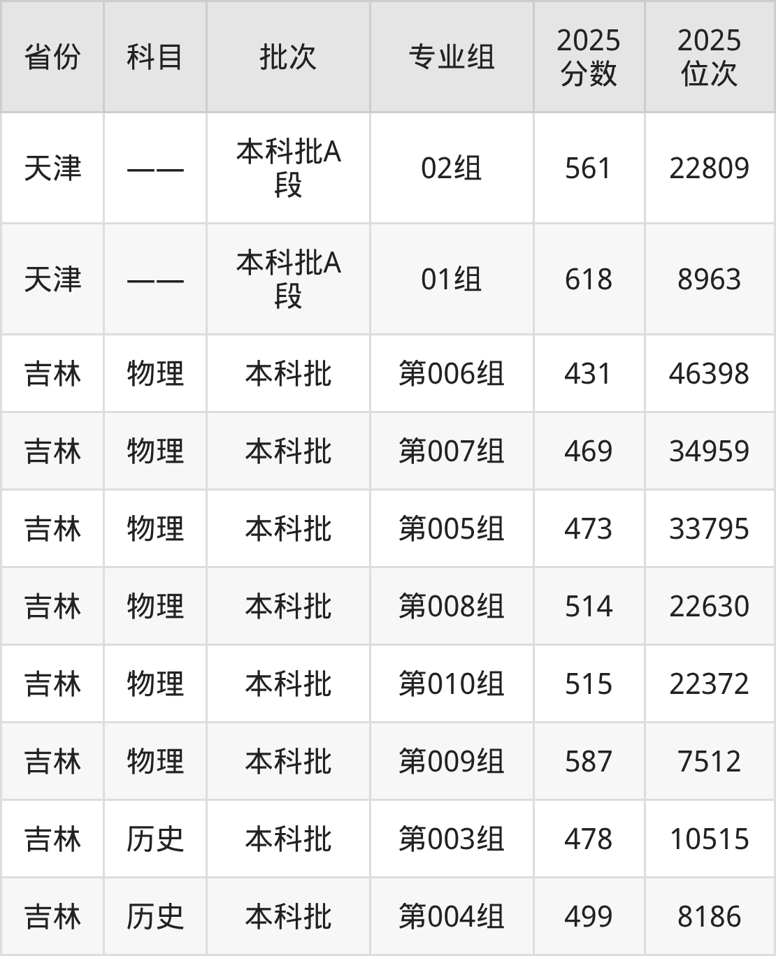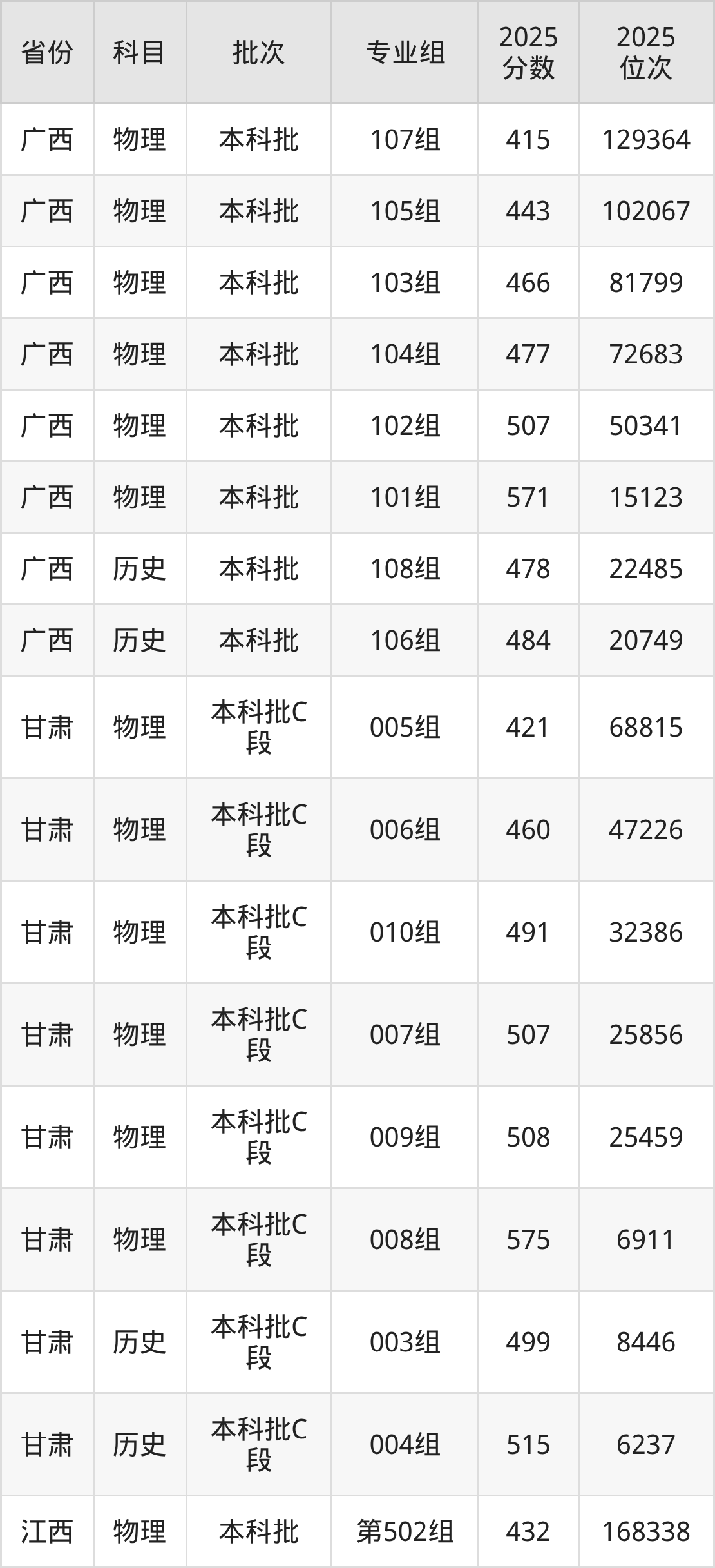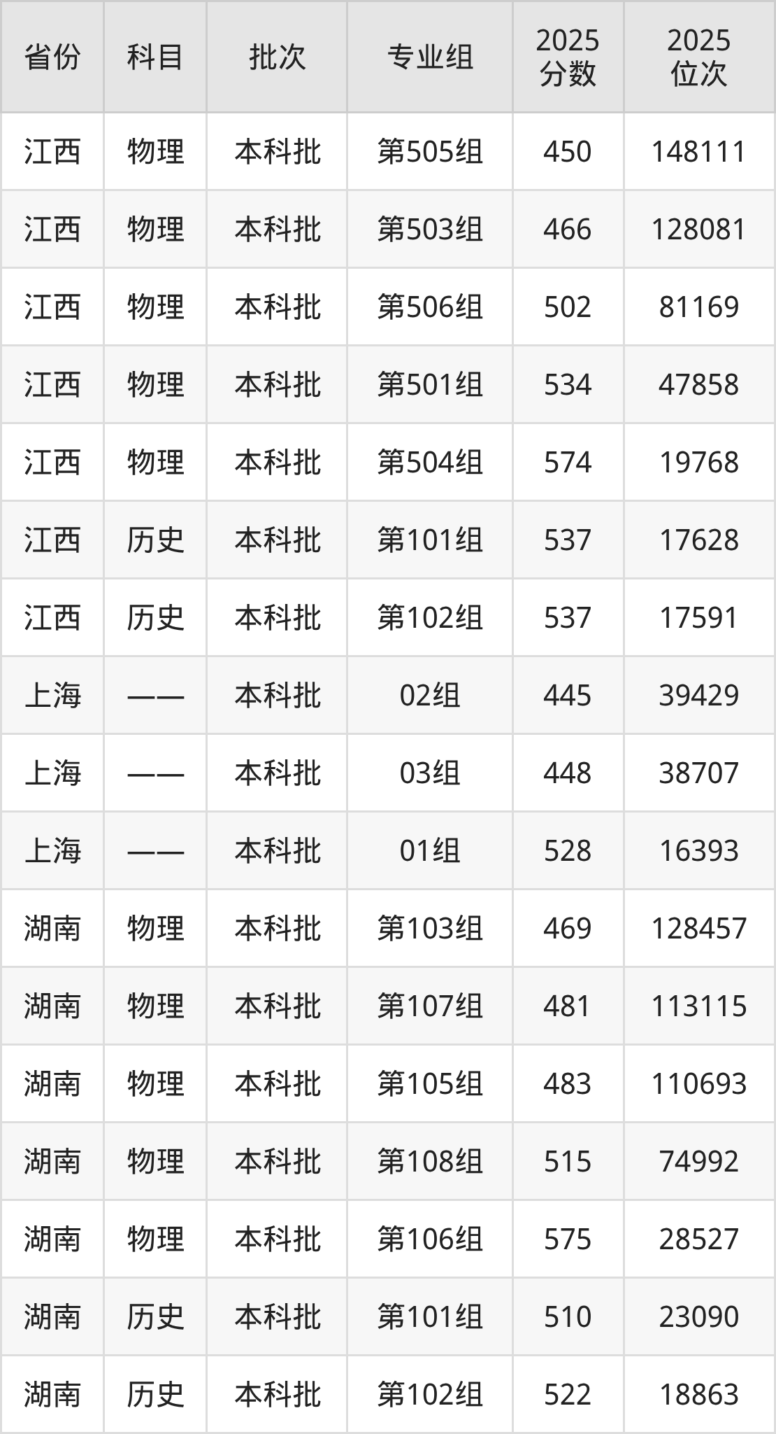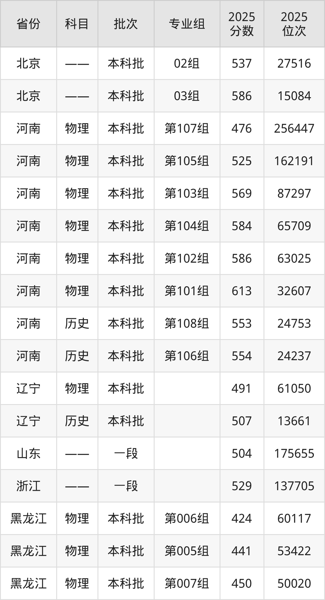 2025年投档录取最低分为474分,录取最低位次为73832名。