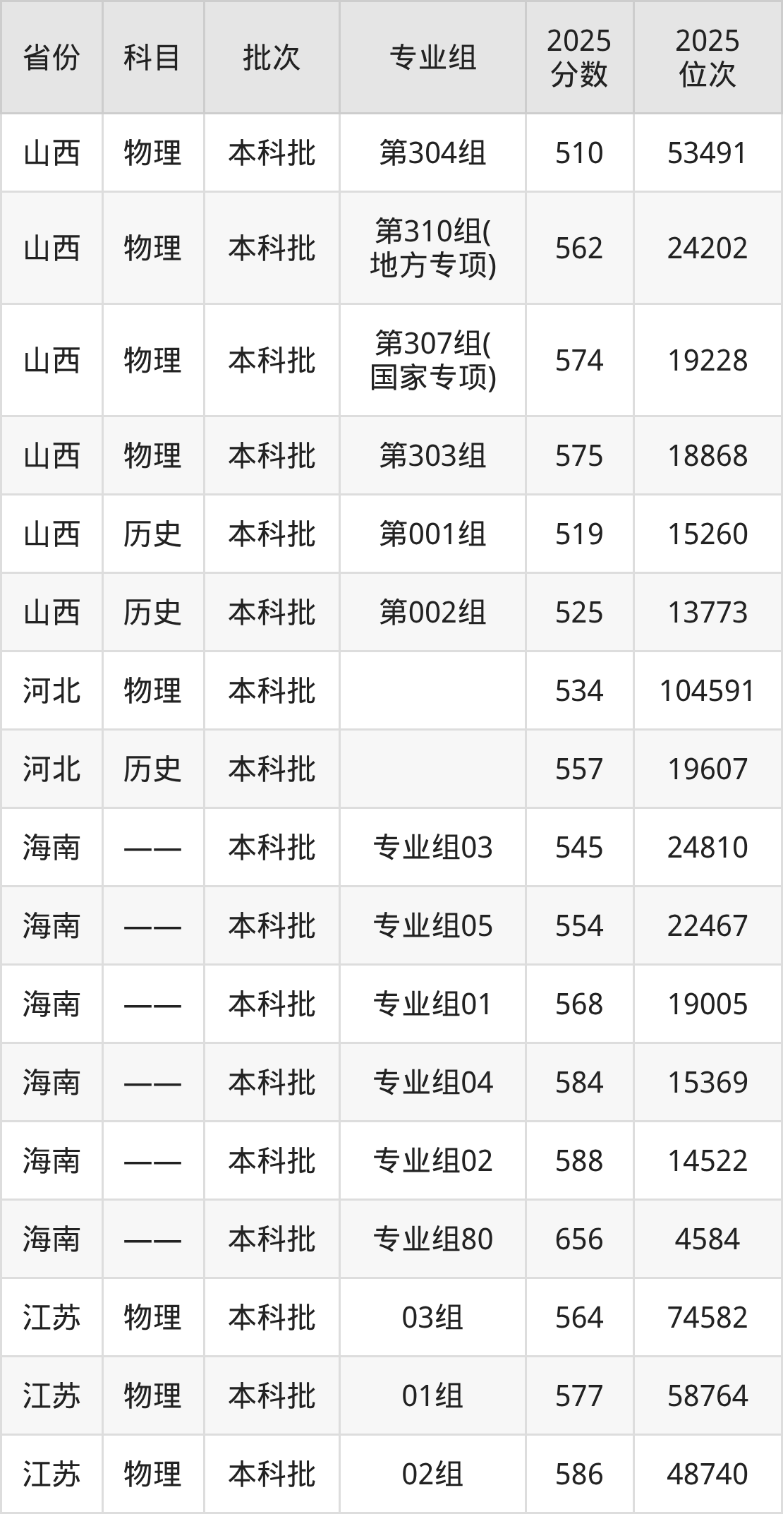 山西医科大学专业组102:2025年投档录取最低分为555分,录取最低位次为17967名。