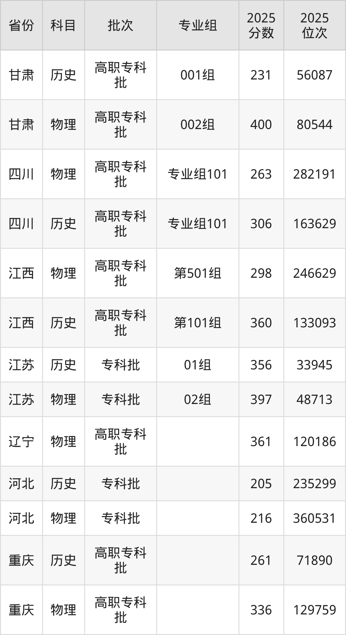 专科历史类投档录取最低205分,专科物理类投档录取最低216分