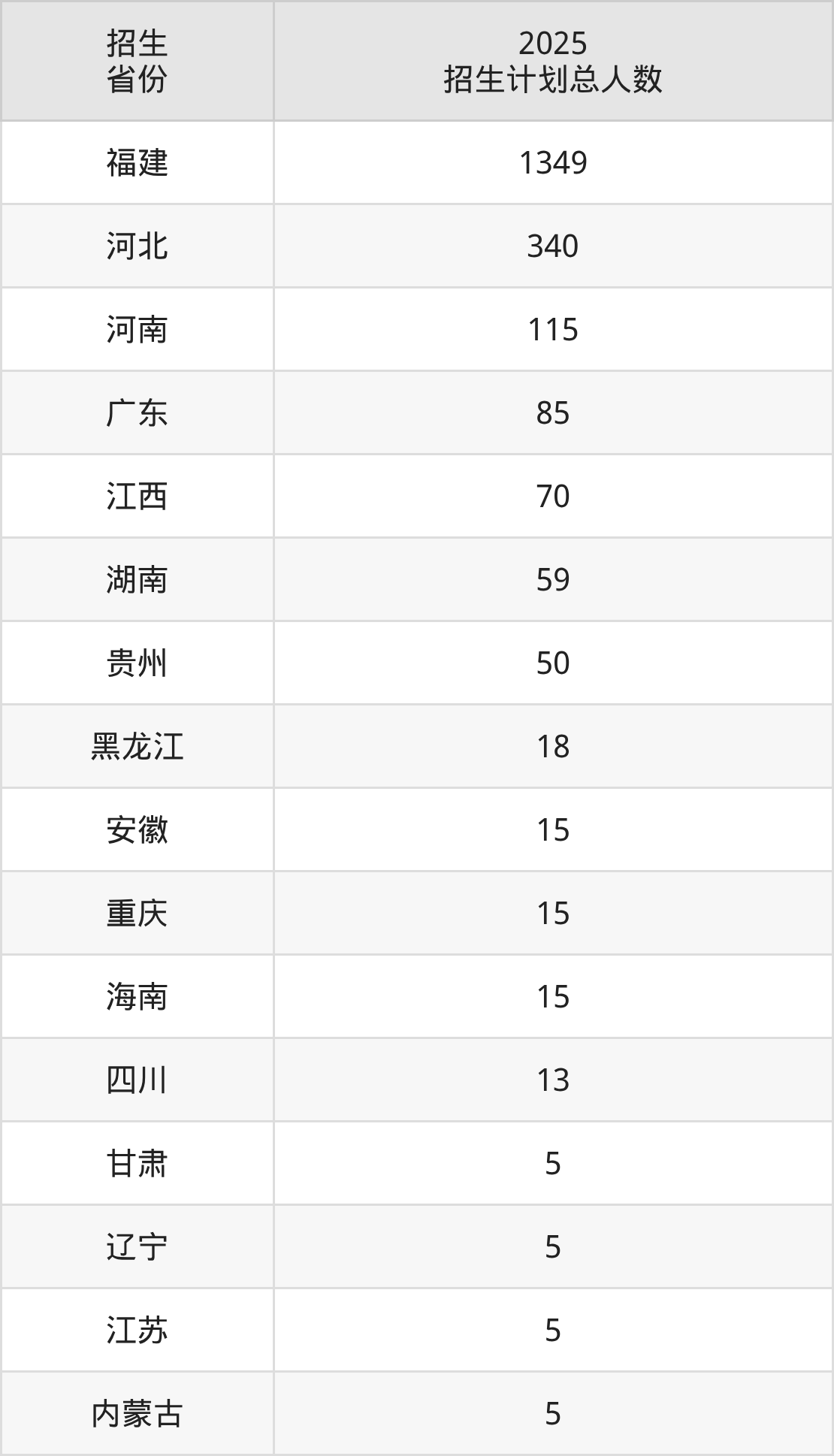 2025年泉州海洋职业学院面向全国17个省市开展专科招生;招生专业共38个,招生人数共2169人。2025年在福建省招生计划总人数是1349人,其中,泉州海洋职业学院在福建省招生人数最多的是航海技术。泉州海洋职业学院在各省具体招生人数情况如下表。