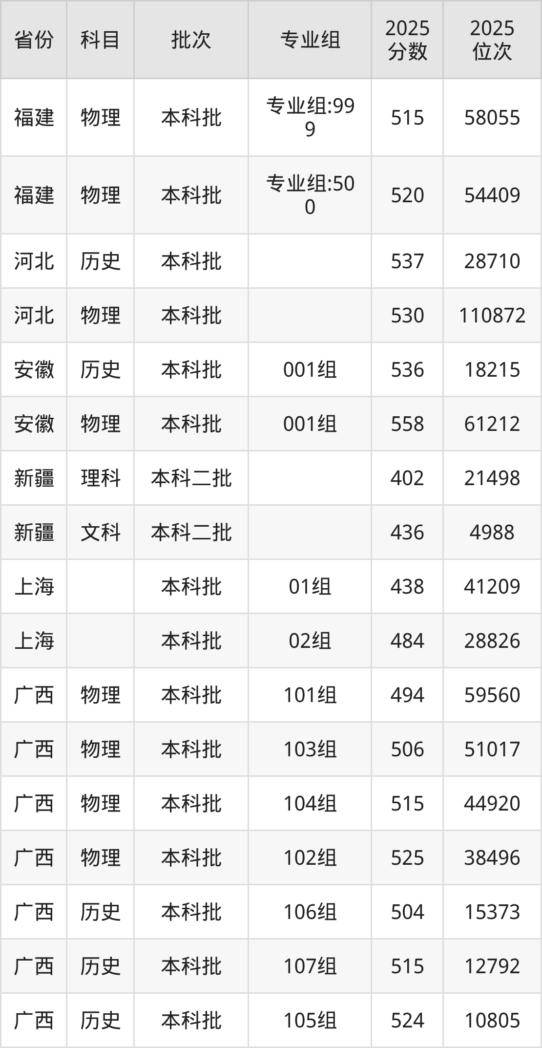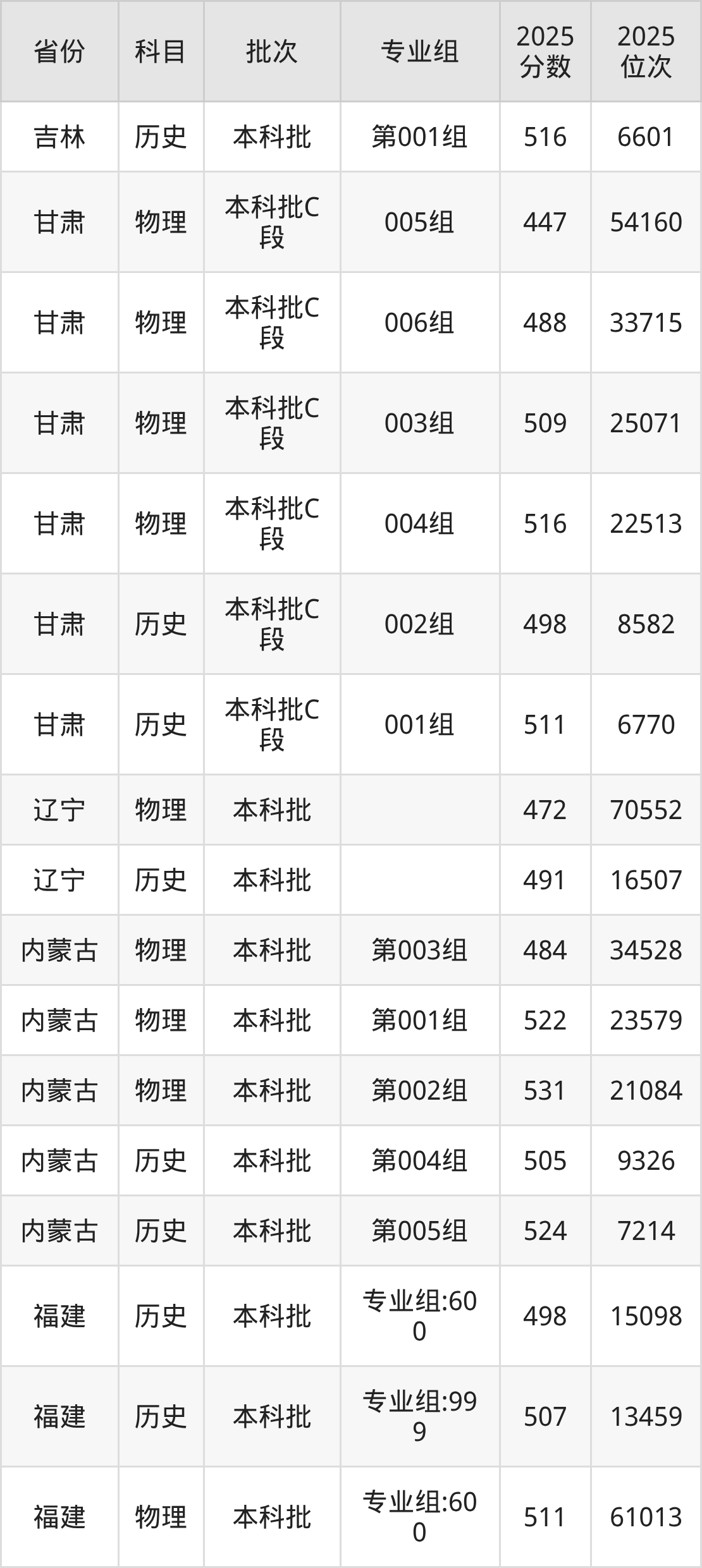 2025年投档录取最低分为472分,录取最低位次为70552名。