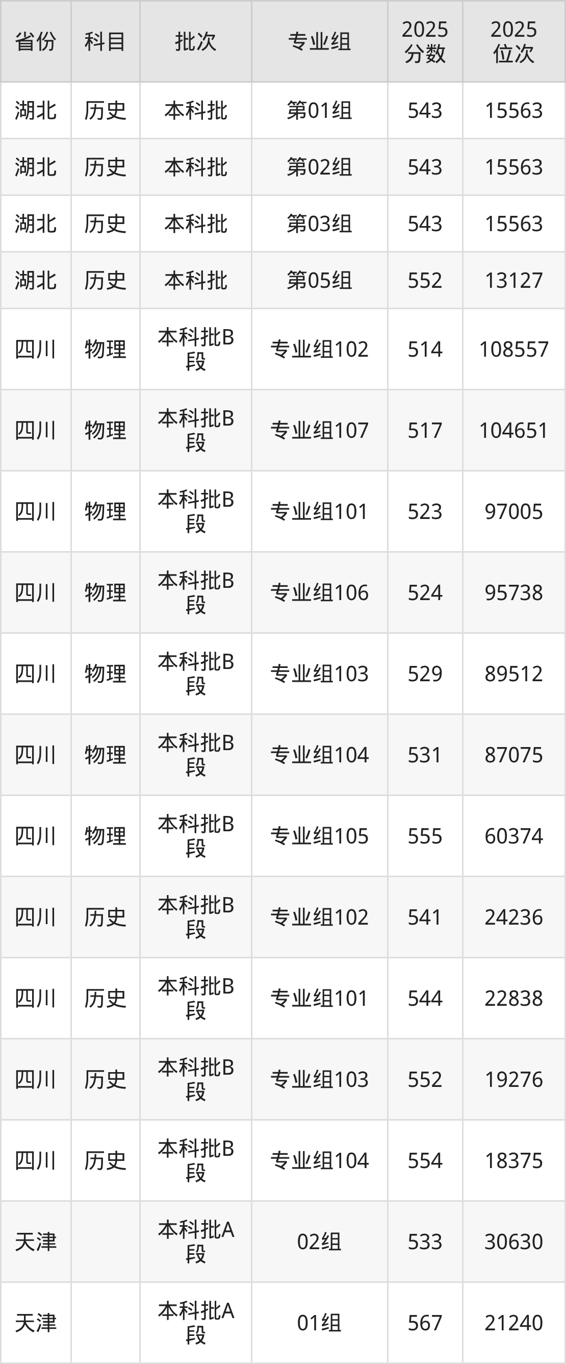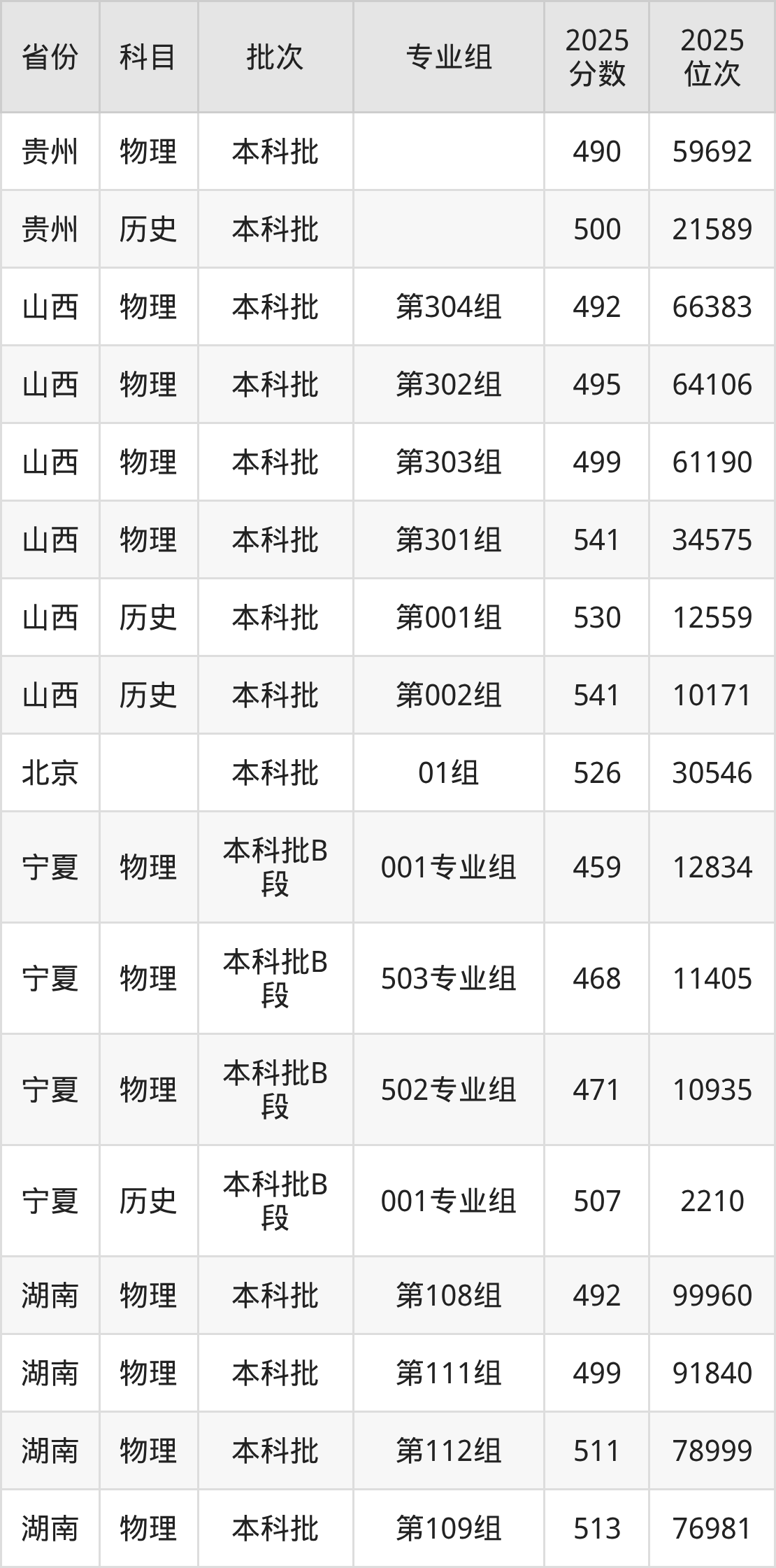 2025年投档录取最低分为491分,录取最低位次为16507名。