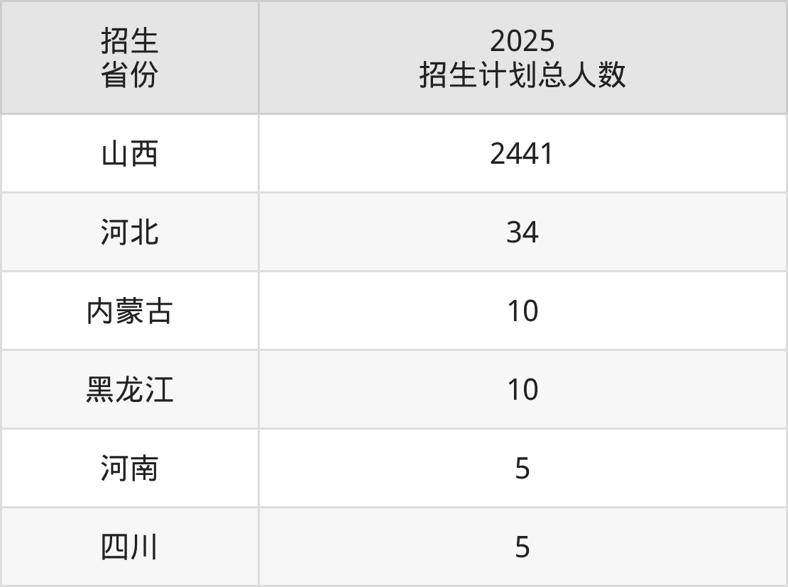 2025年山西机电职业技术学院面向全国6个省市开展专科招生;招生专业共29个,招生人数共2505人。2025年在山西省招生计划总人数是2441人,其中,山西机电职业技术学院在山西省招生人数最多的是电气自动化技术。山西机电职业技术学院在各省具体招生人数情况如下表。
