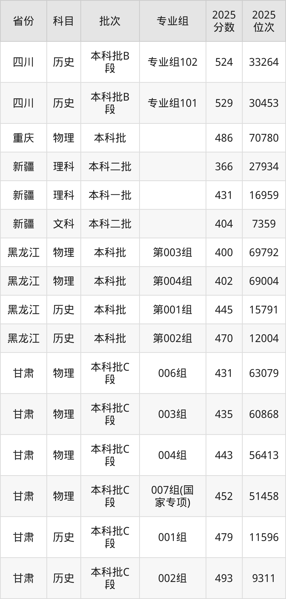 塔里木大学第03组:2025年投档录取最低分为475分,录取最低位次为108619名。