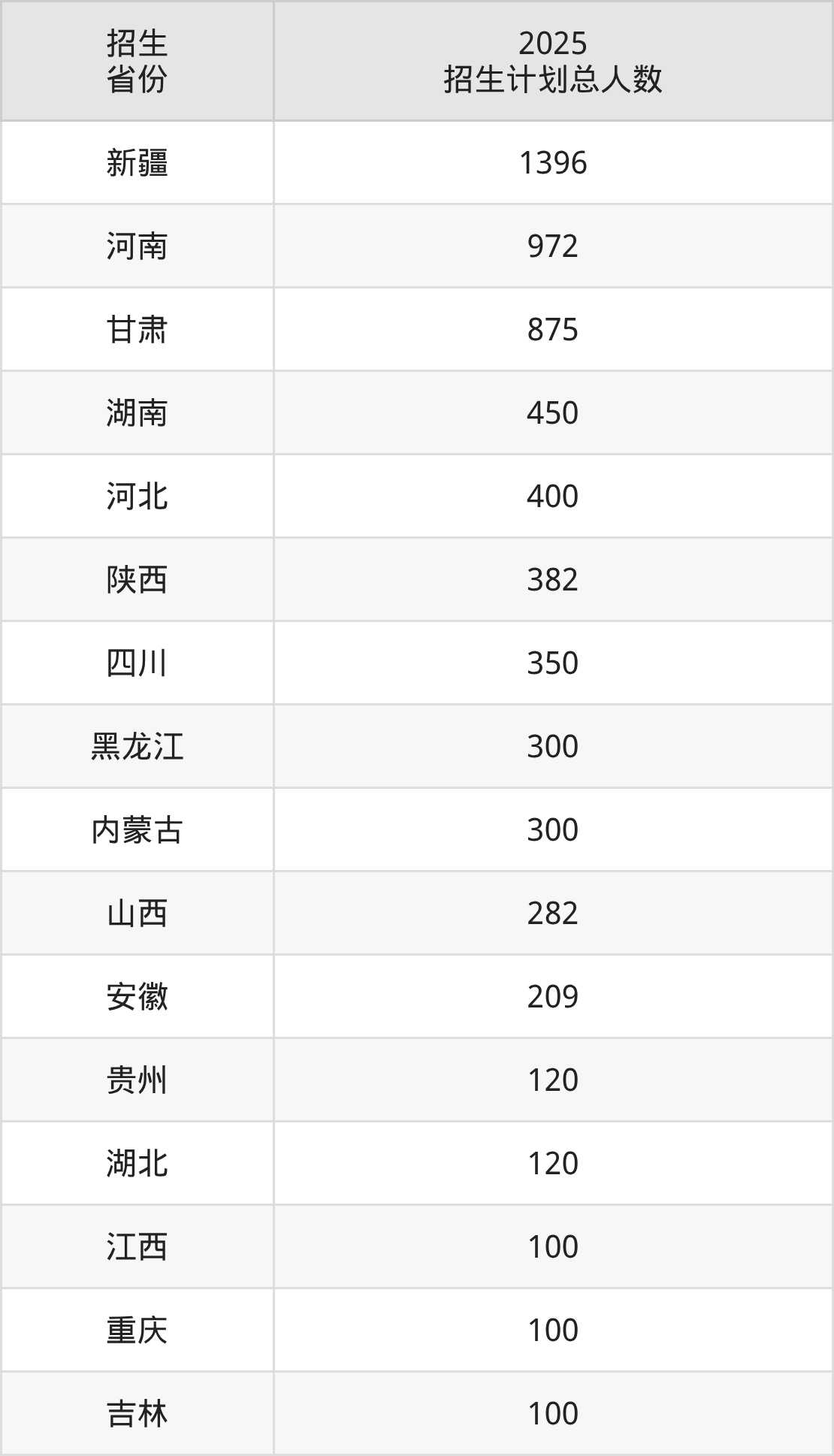 2025年塔里木大学面向全国28个省市开展本科招生;招生专业共85个,招生人数共6997人。2025年在新疆维吾尔自治区招生计划总人数是1396人,其中,塔里木大学在新疆维吾尔自治区招生人数最多的是工商管理类。塔里木大学在各省具体招生人数情况如下表。