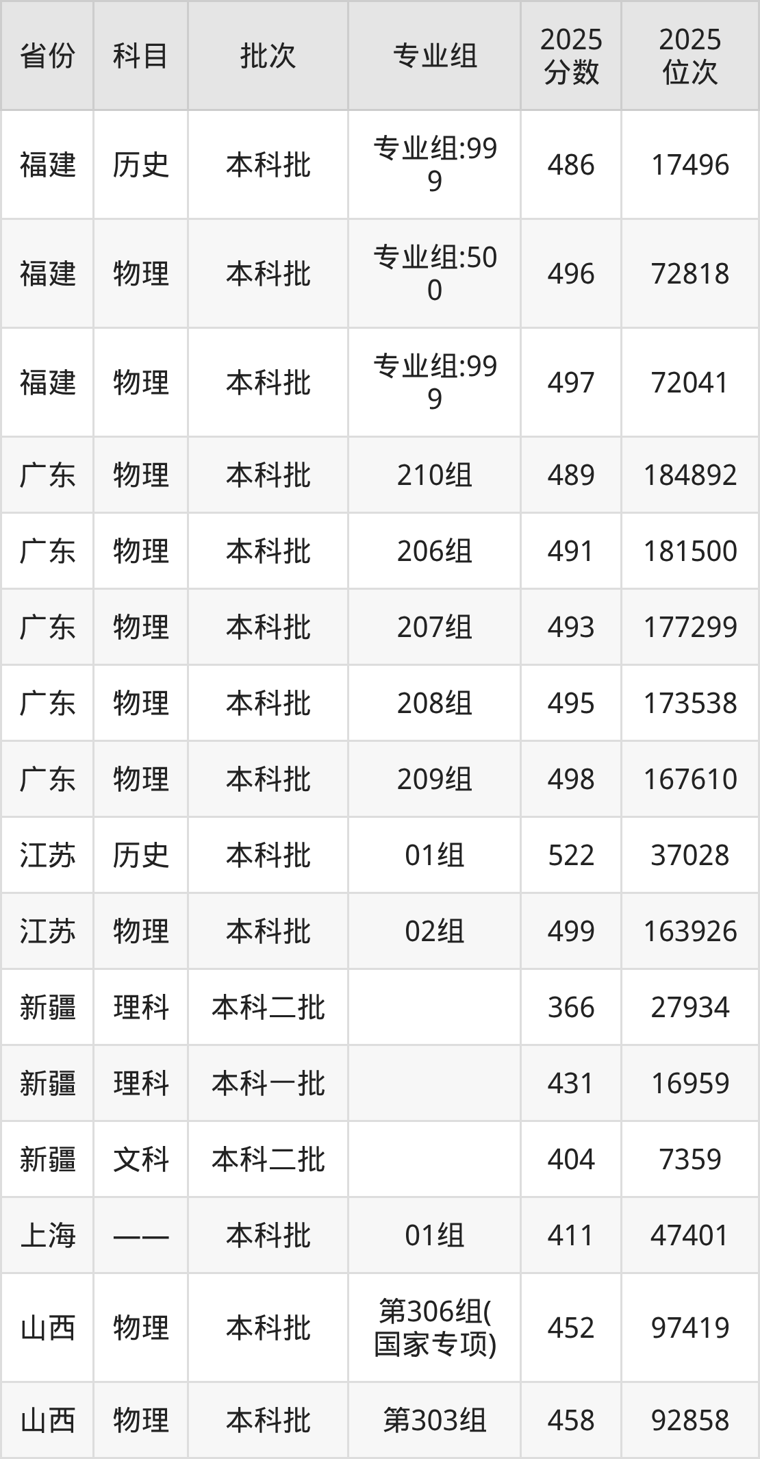 普通类本科物理类最低486分,本科历史类最低523分