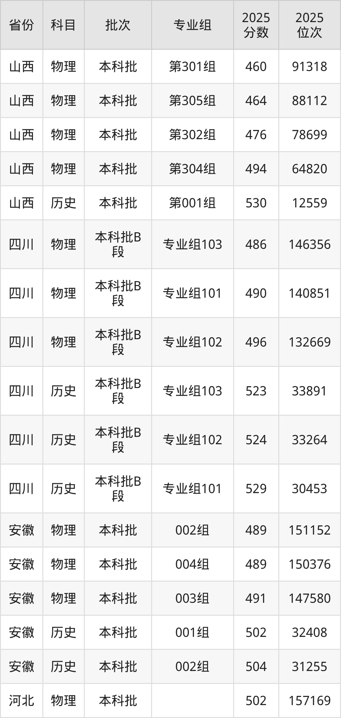 普通类本科历史类最低502分,本科物理类最低489分