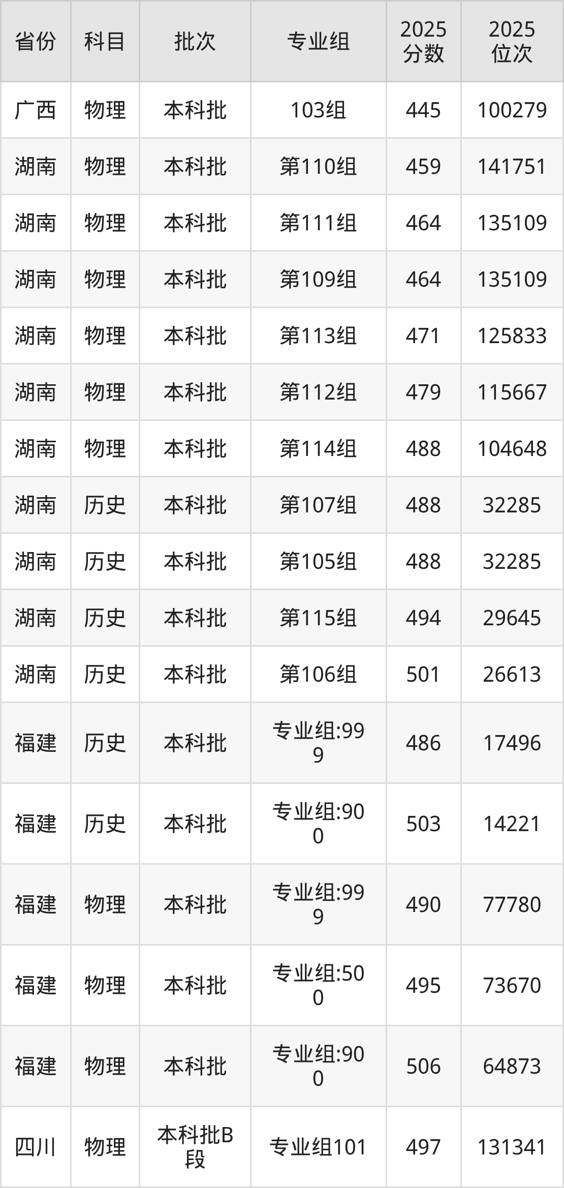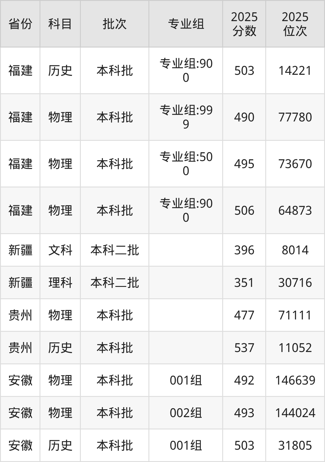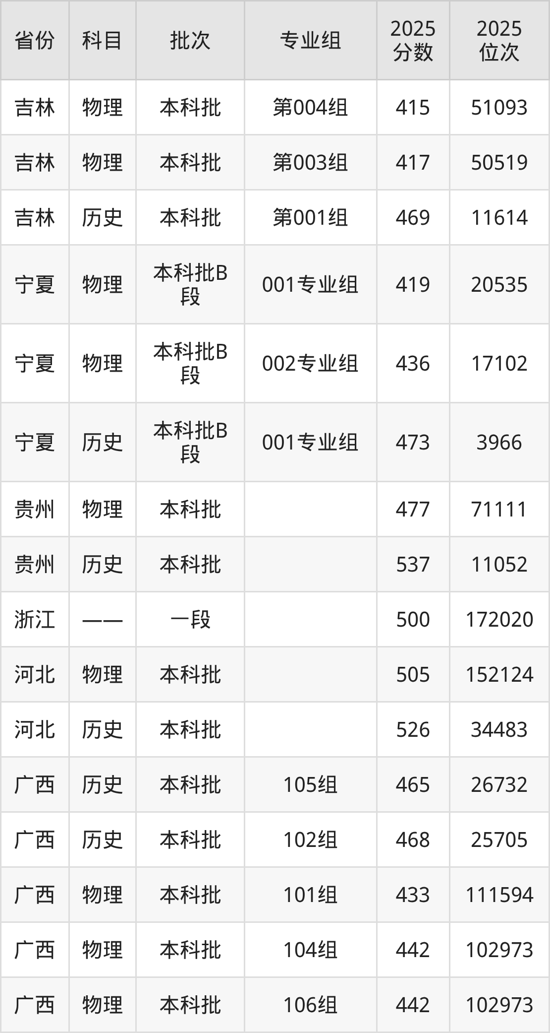 普通类本科物理类最低419分,本科历史类最低473分