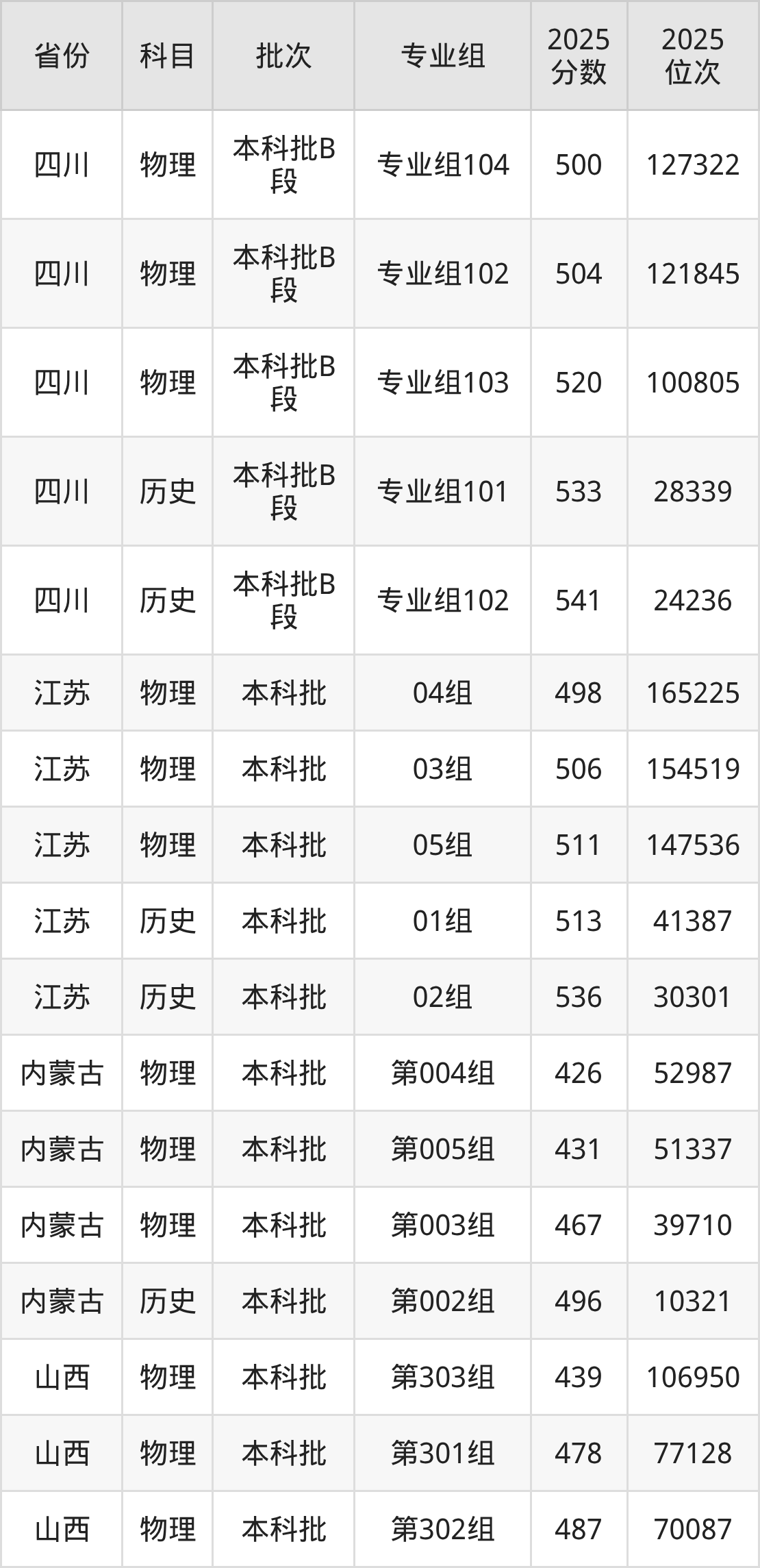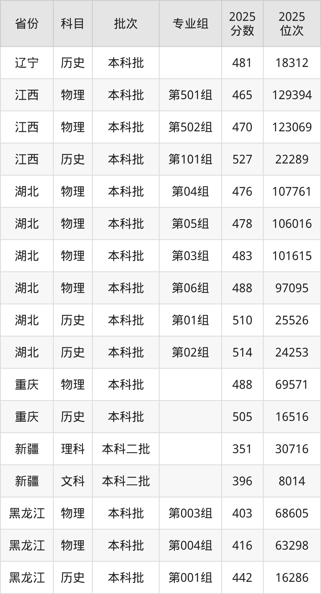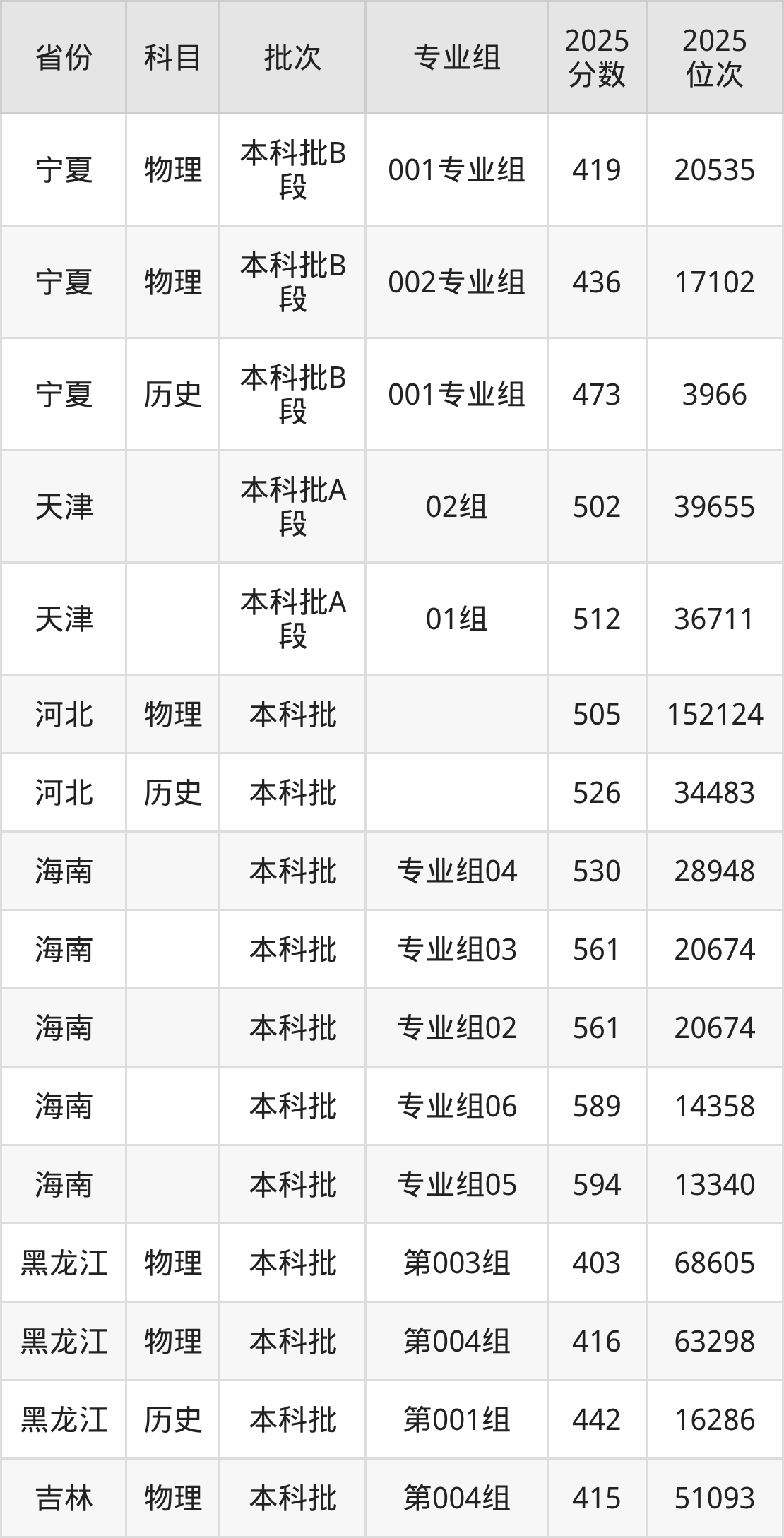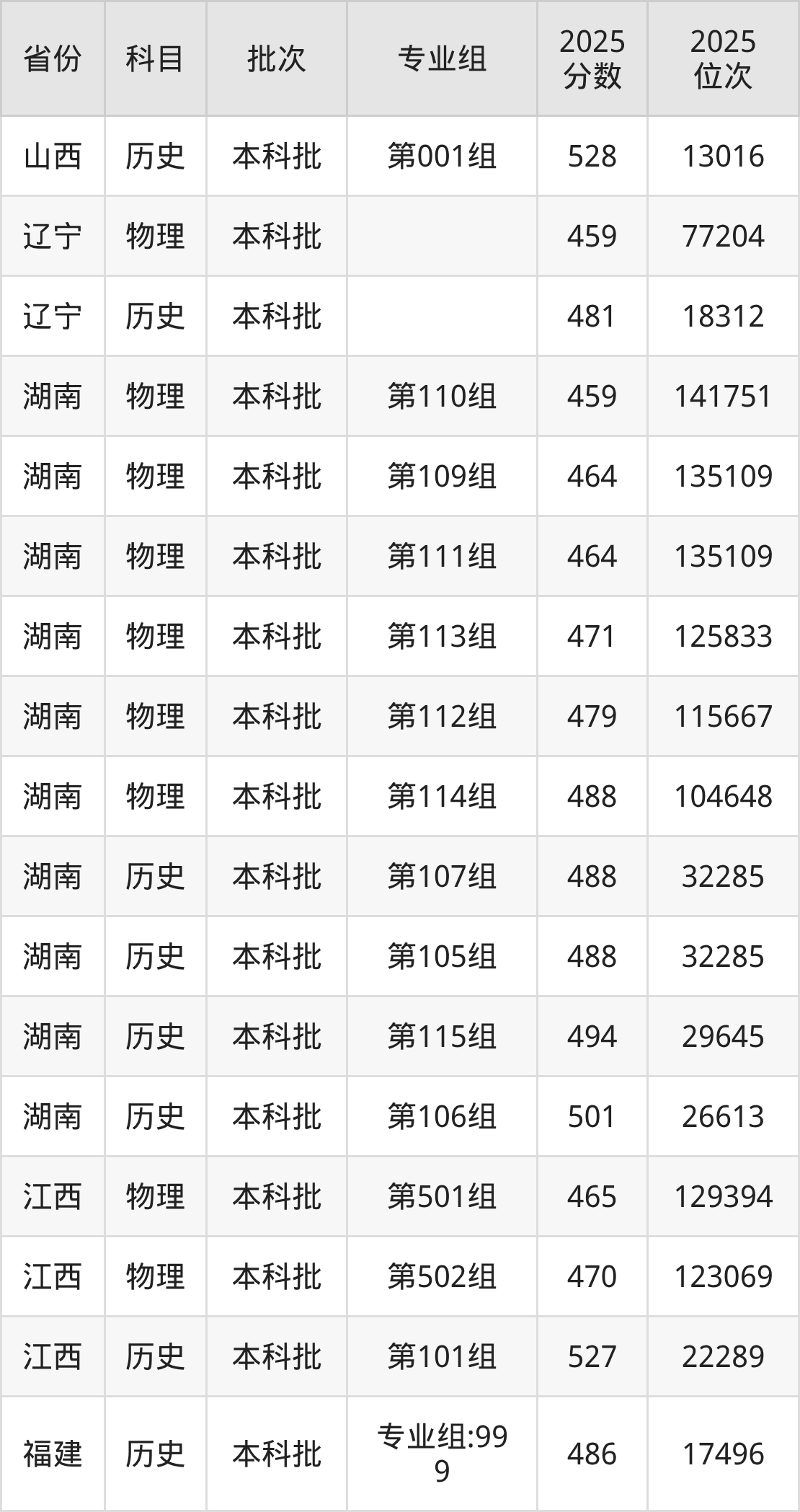 普通类本科物理类最低419分,本科历史类最低473分