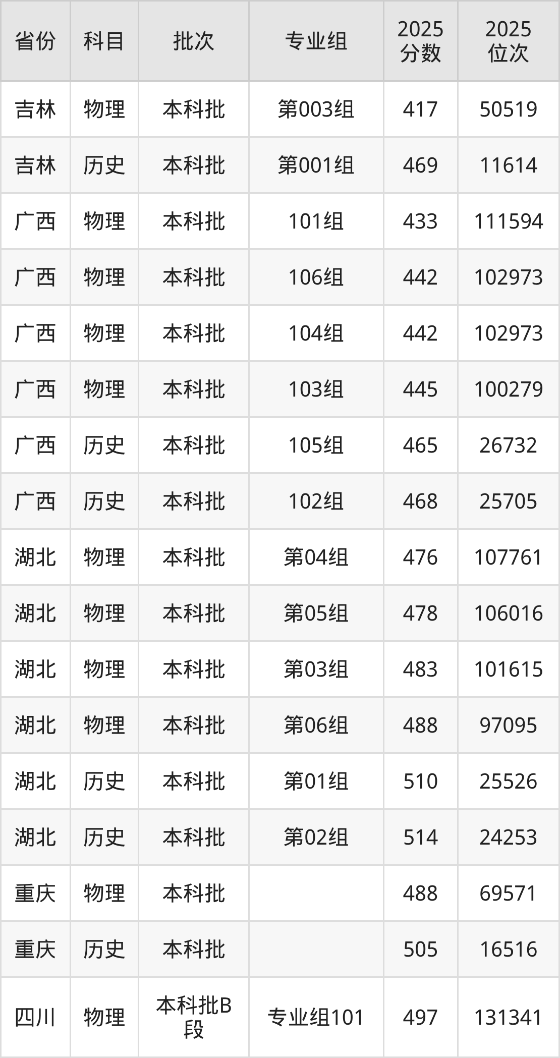 普通类本科物理类最低433分,本科历史类最低465分