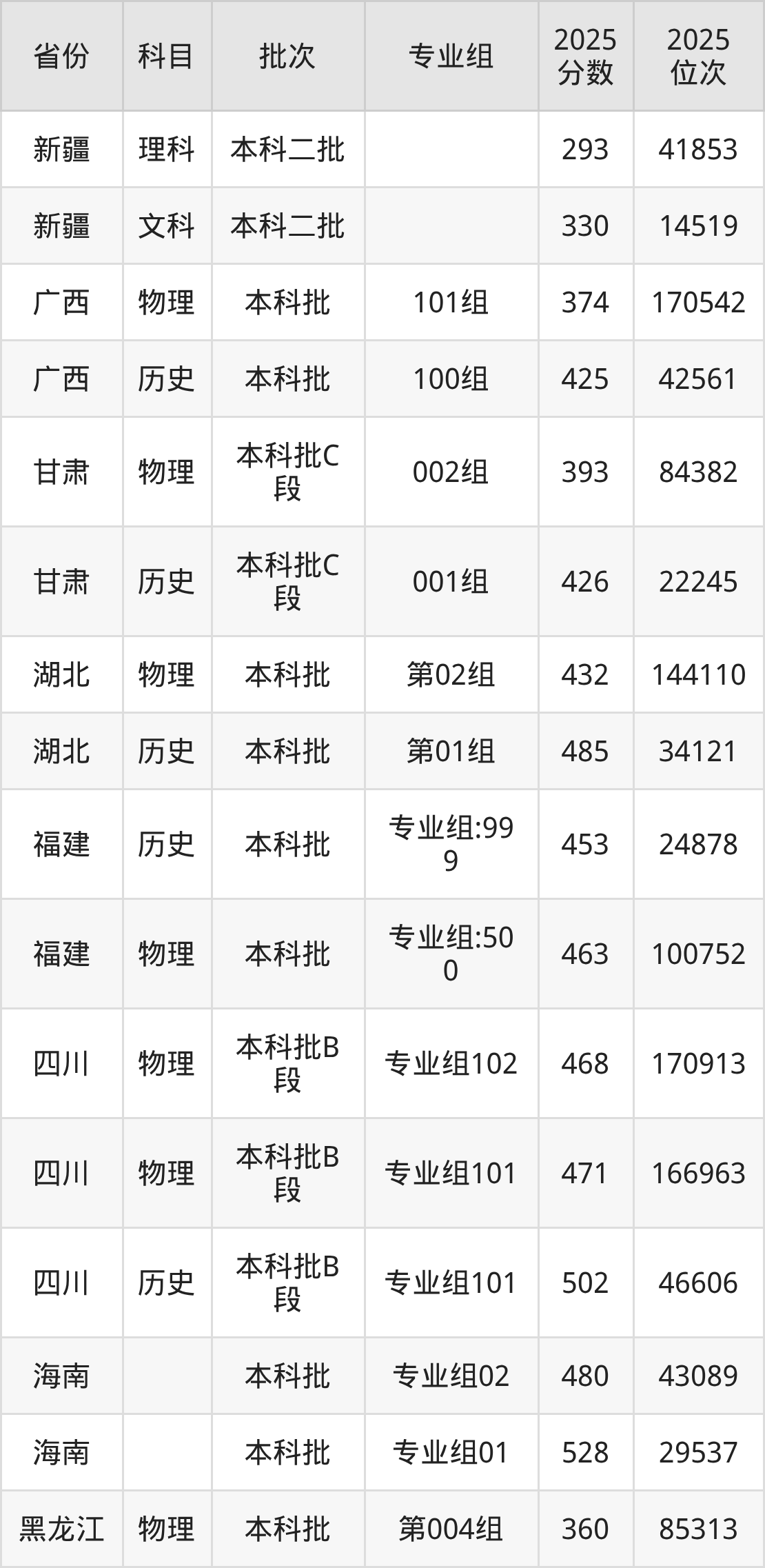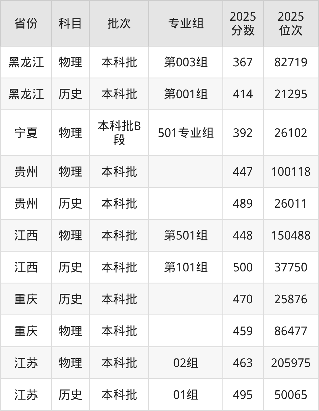 2025年在本科物理类进行招生,各专业组分数线详情如下: