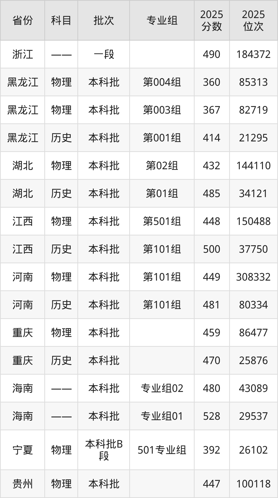 2025年投档录取最低分为470分,录取最低位次为25876名。