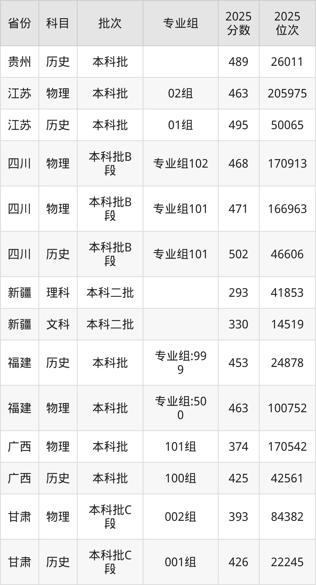2025年投档录取最低分为489分,录取最低位次为26011名。