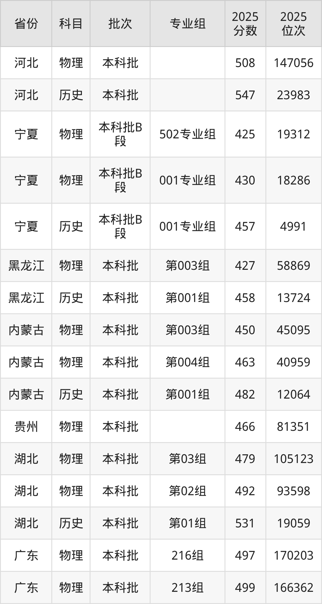 2025年投档录取最低分为508分,录取最低位次为15814名。