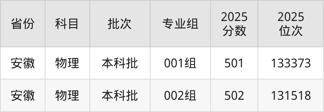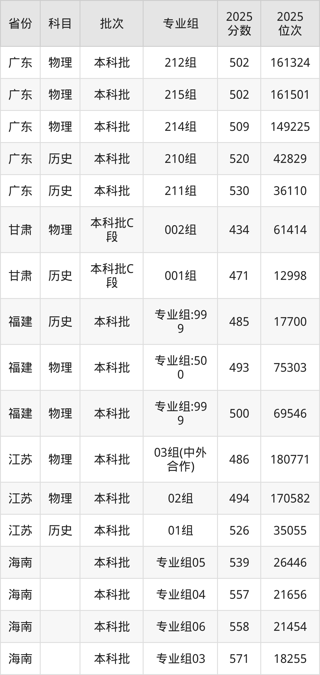 2025年在本科理科进行招生,各专业组分数线详情如下: