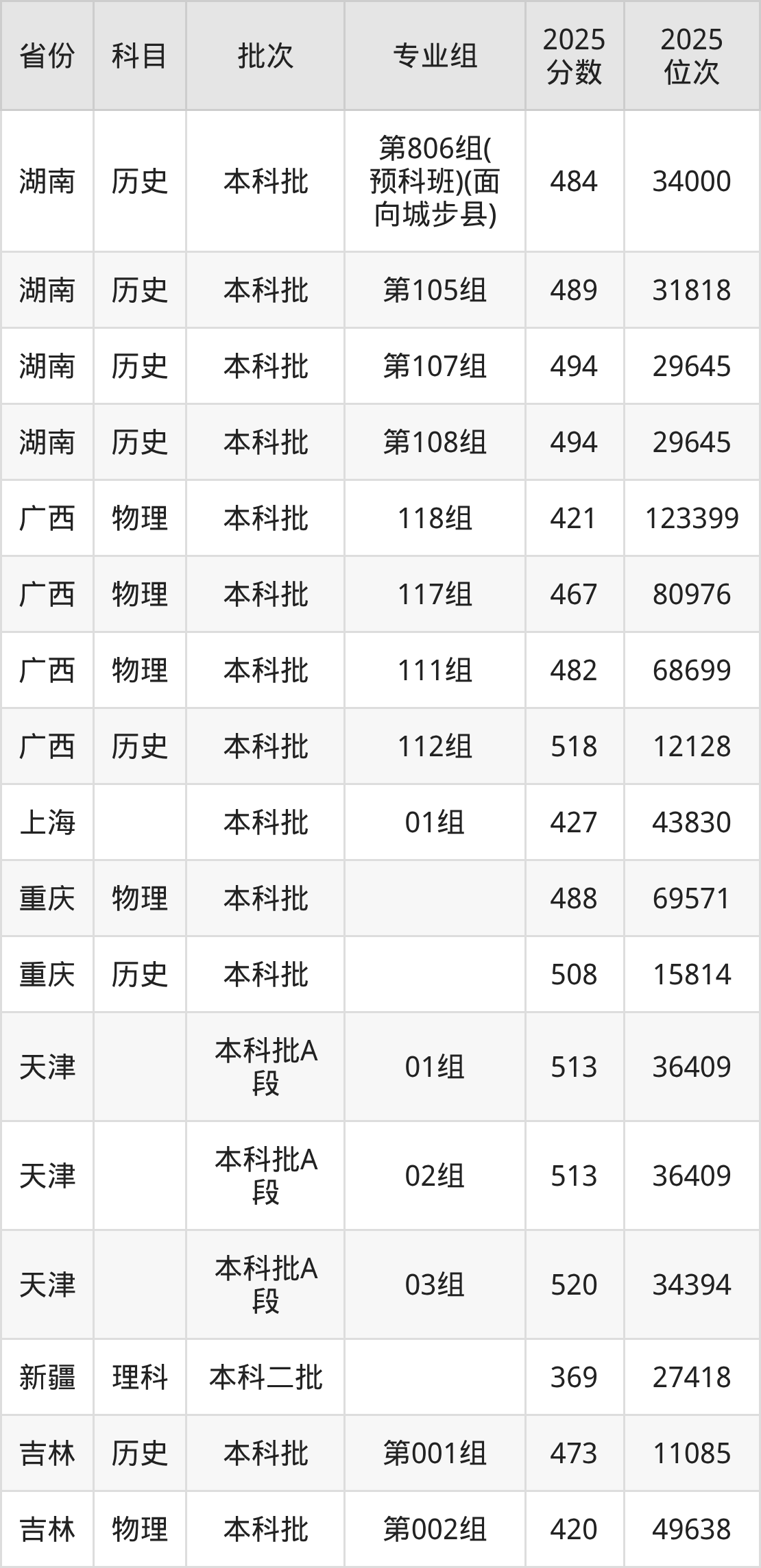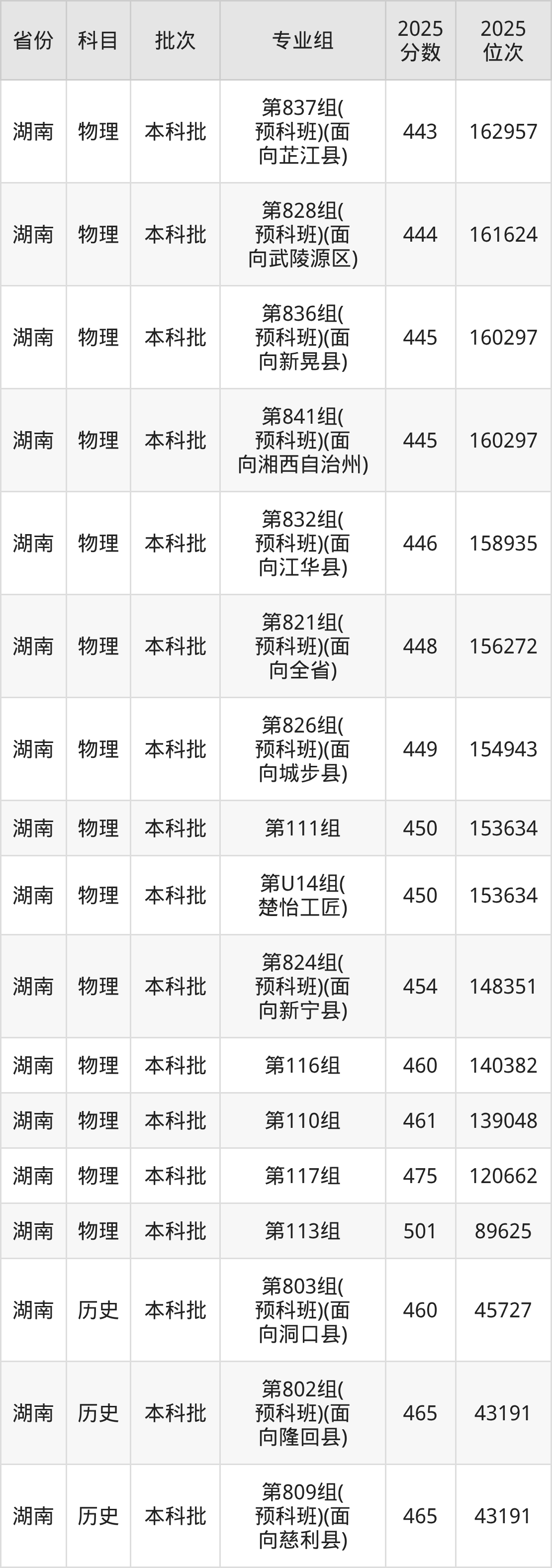 邵阳学院第802组(少数民族预科班)(面向隆回县):2025年投档录取最低分为465分,录取最低位次为43191名。