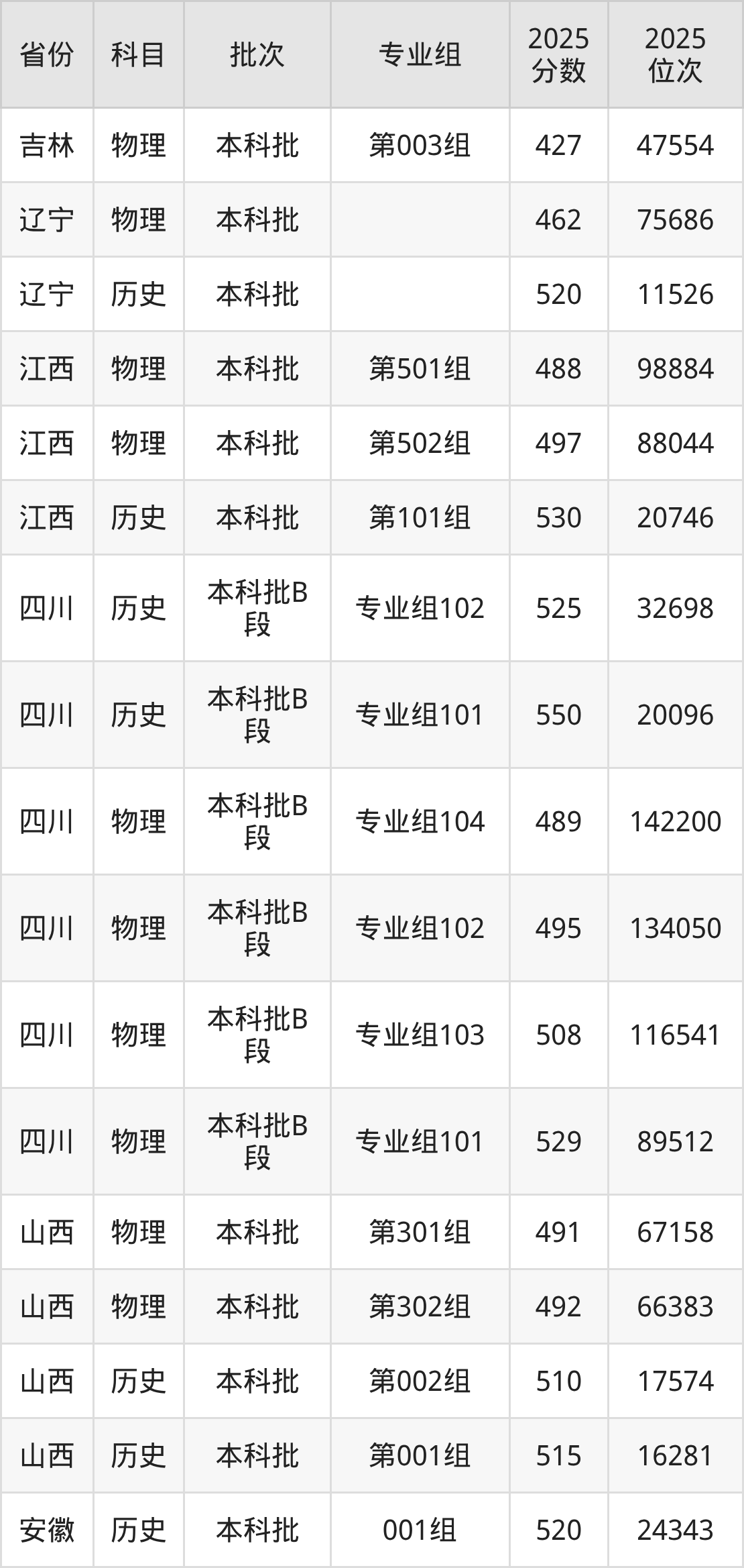 2025年投档录取最低分为520分,录取最低位次为11526名。