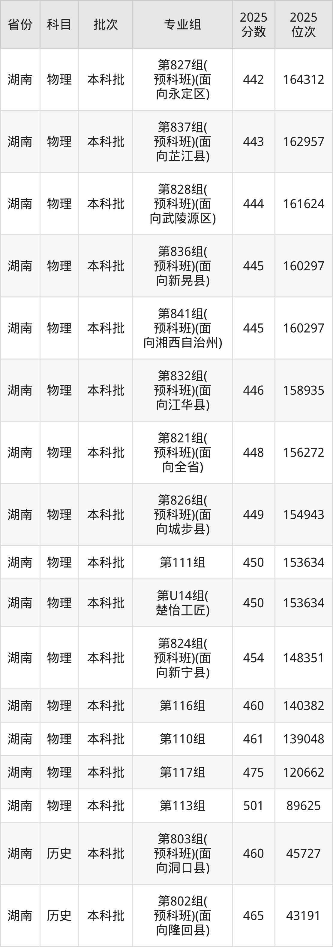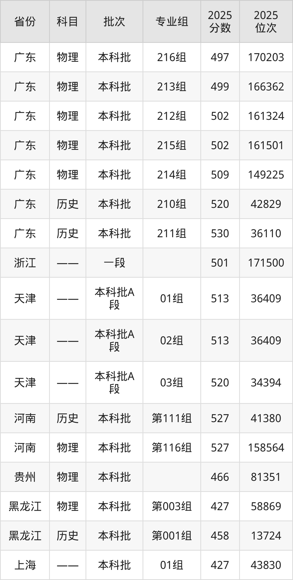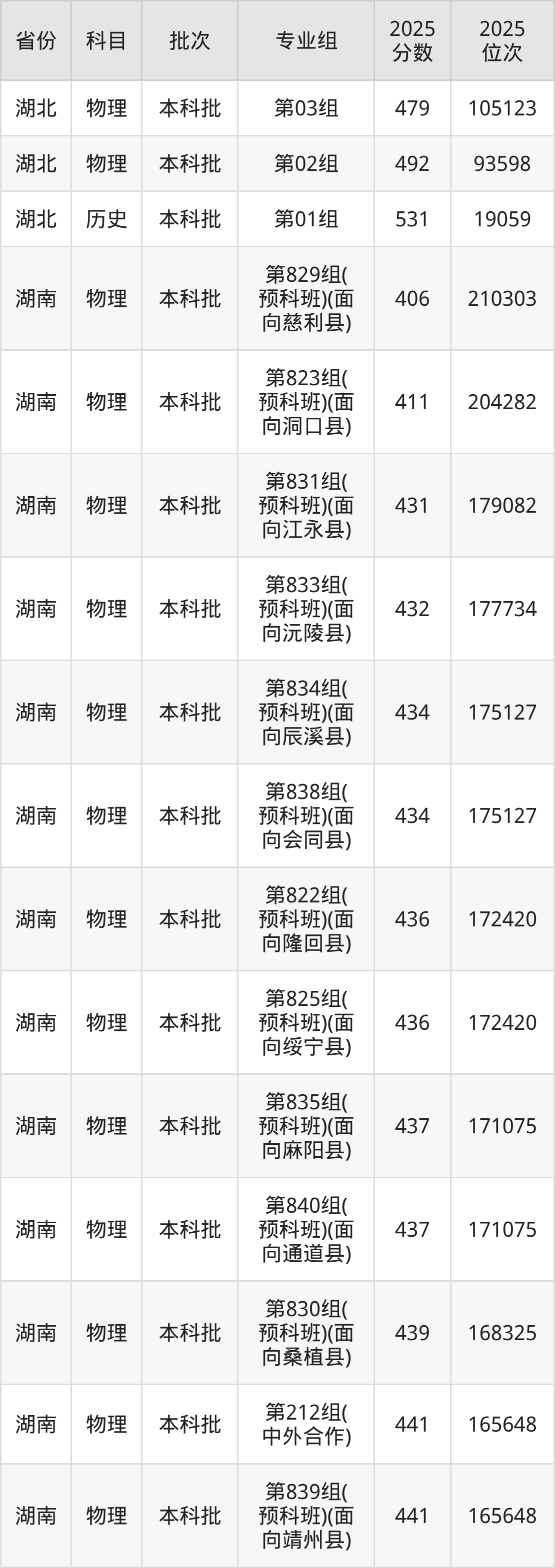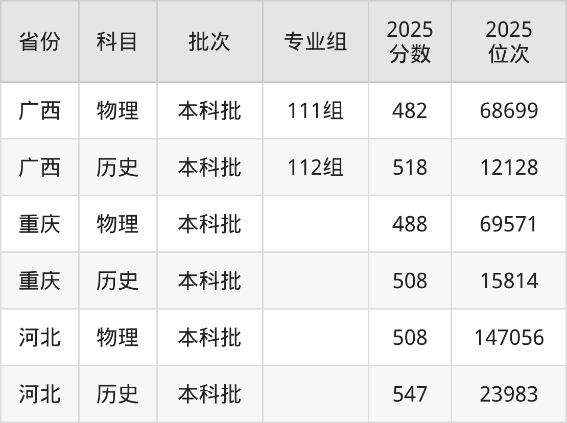 2025年在本科物理类进行招生,各专业组分数线详情如下: