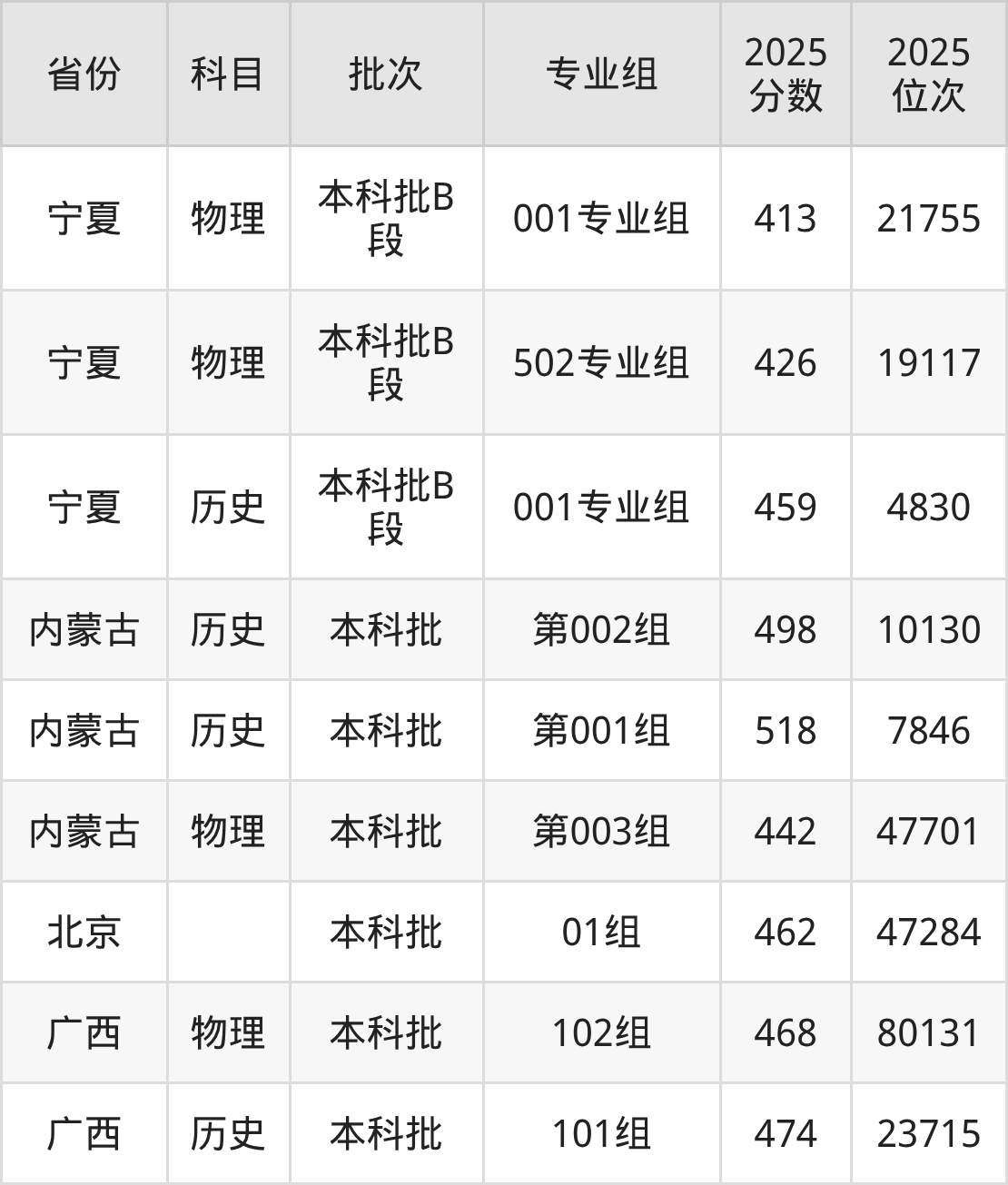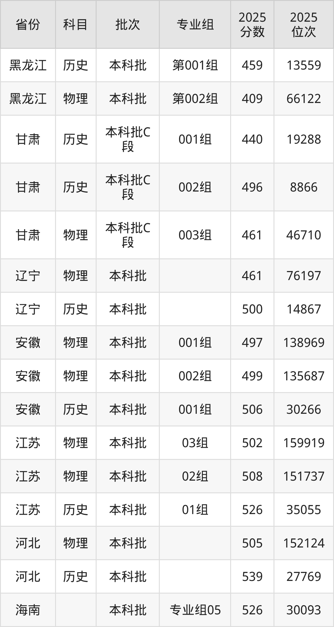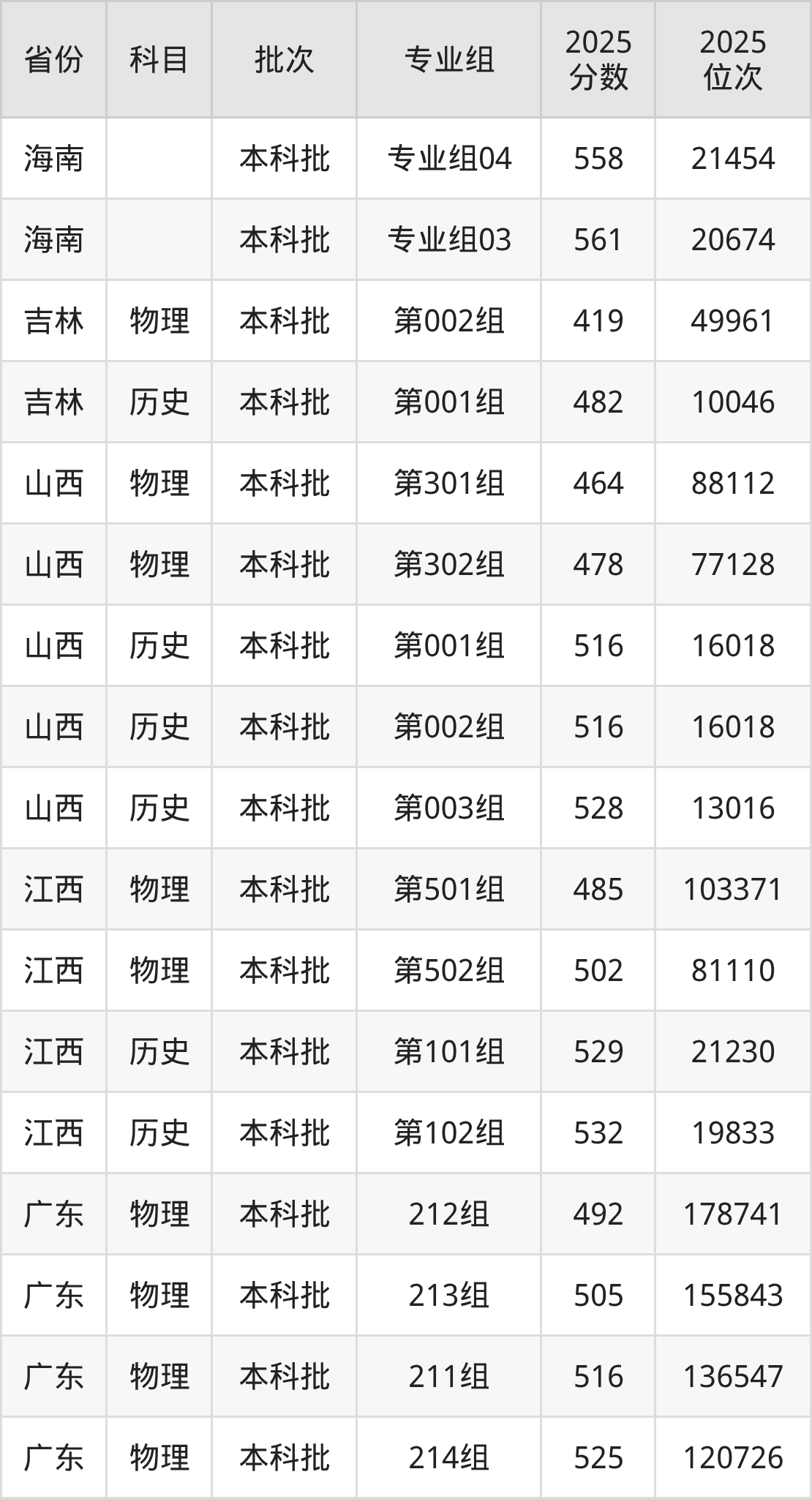 2025年投档录取最低分为461分,录取最低位次为76197名。