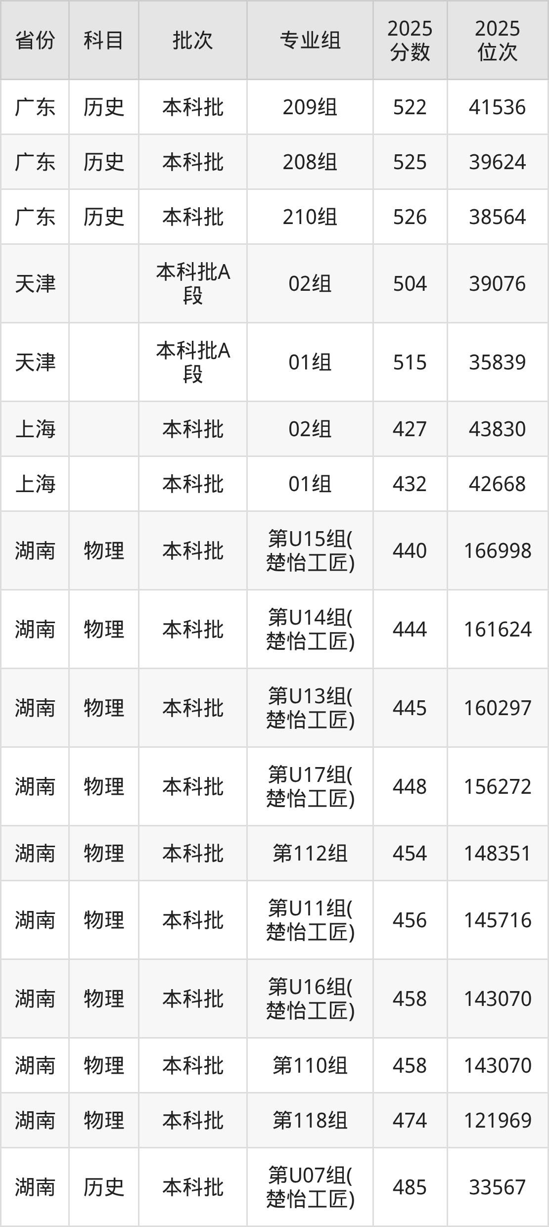 湖南城市学院001组:2025年投档录取最低分为506分,录取最低位次为30266名。