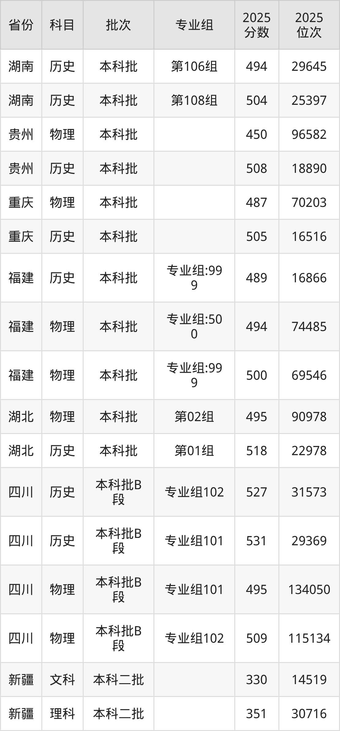 2025年投档录取最低分为330分,录取最低位次为14519名。