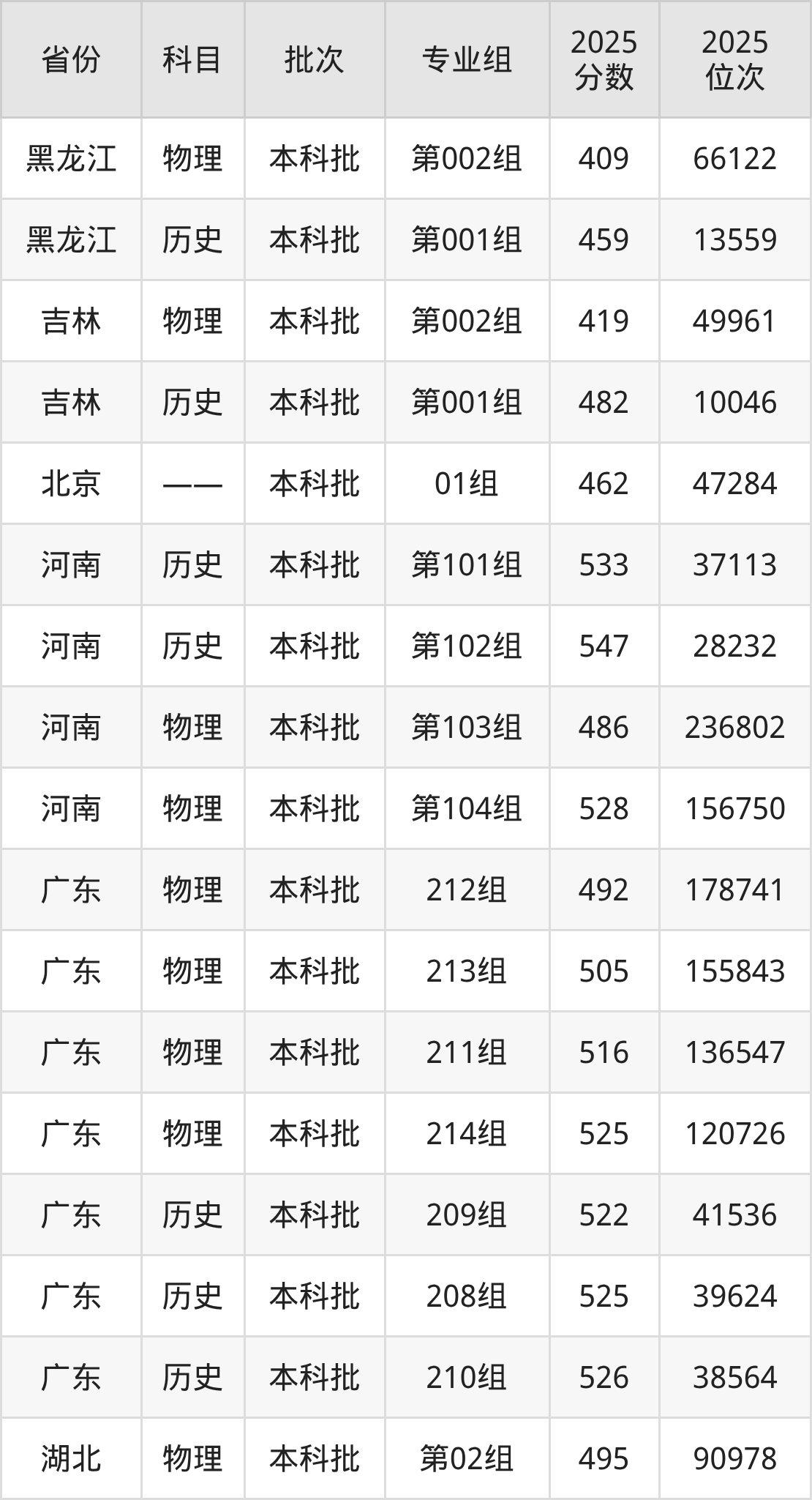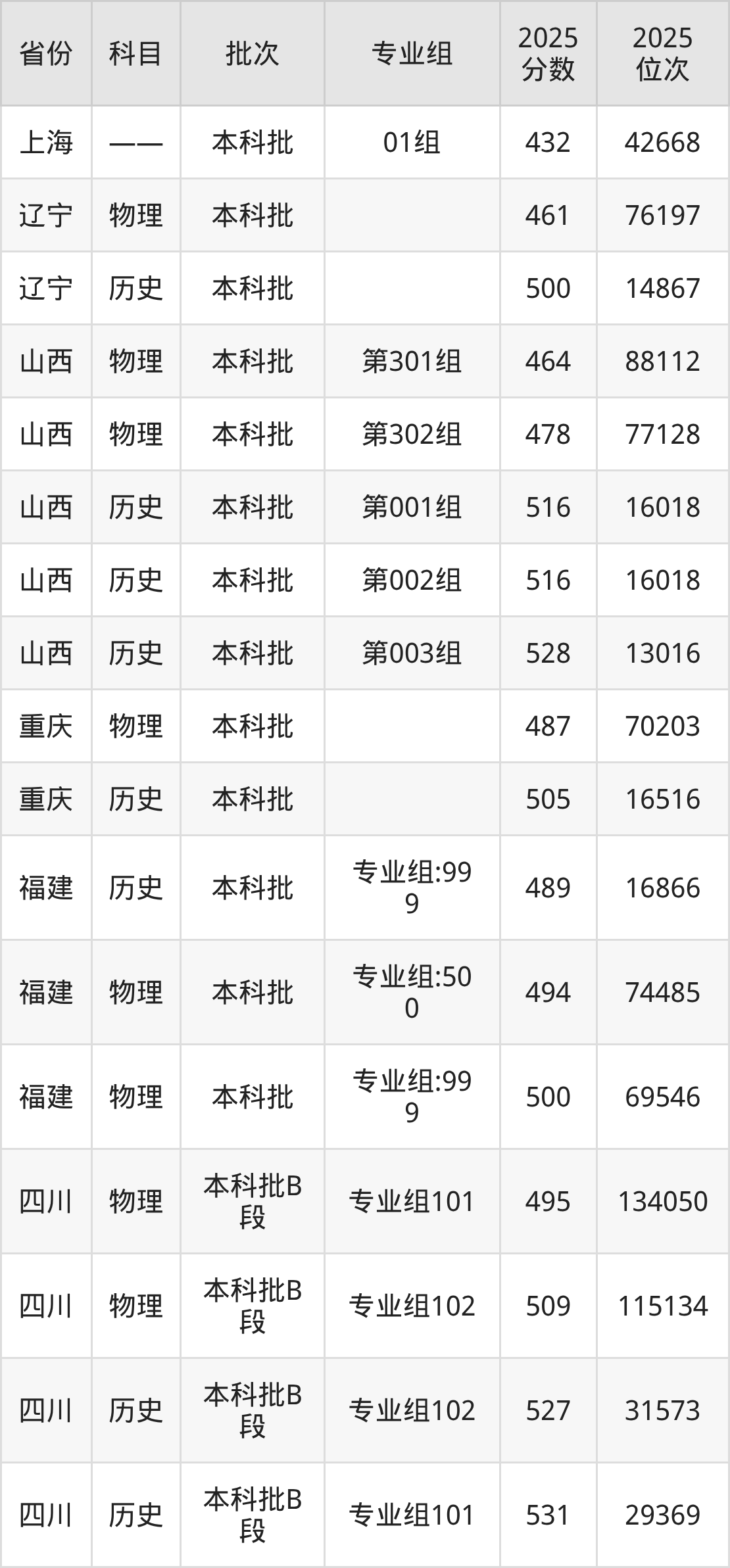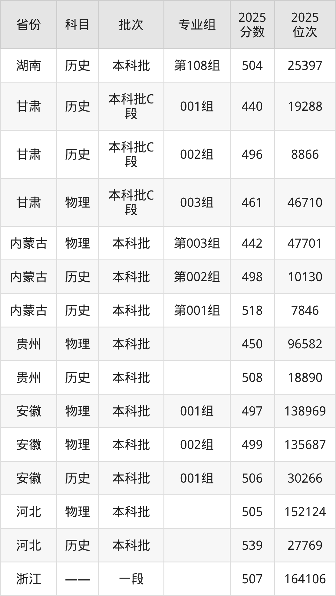 2025年投档录取最低分为508分,录取最低位次为18890名。