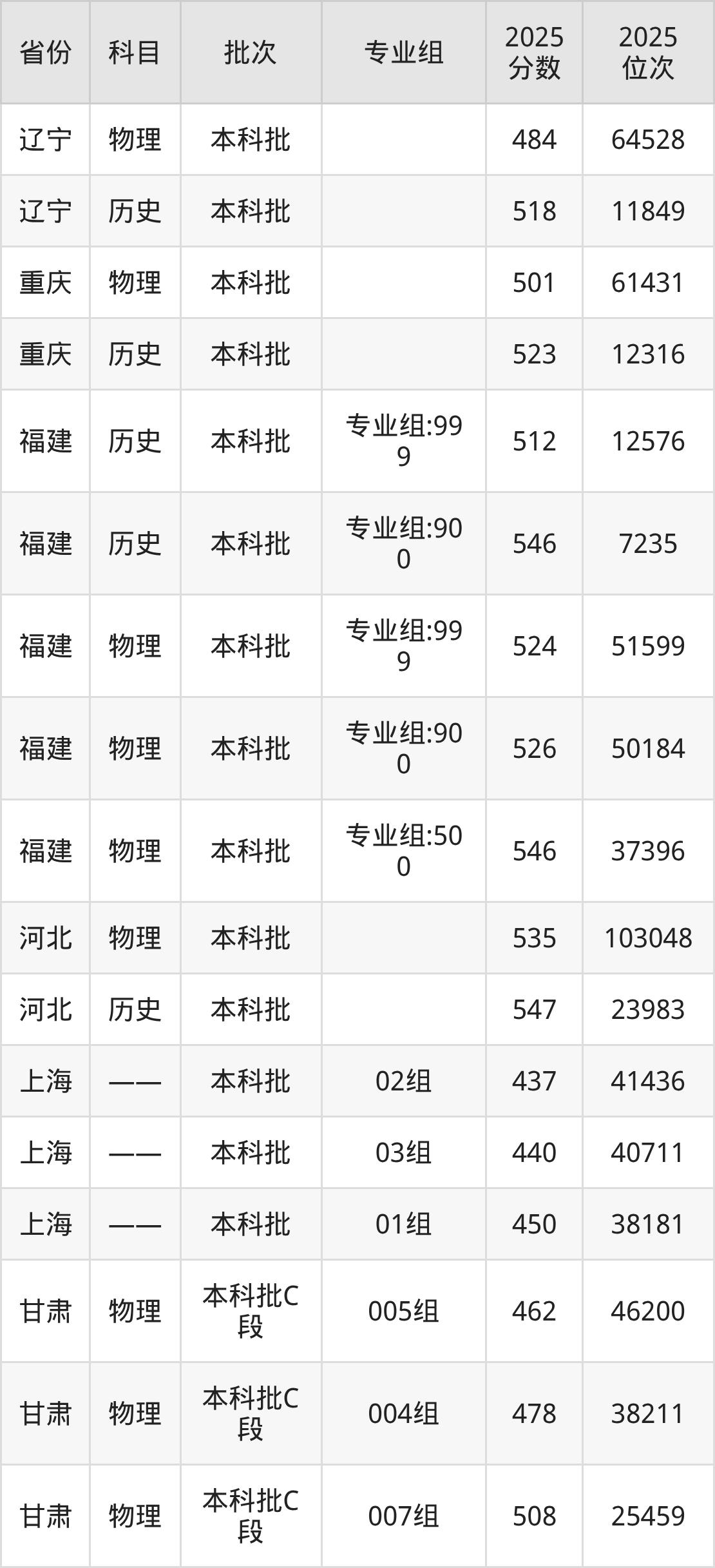 普通类本科物理类最低535分,本科历史类最低547分